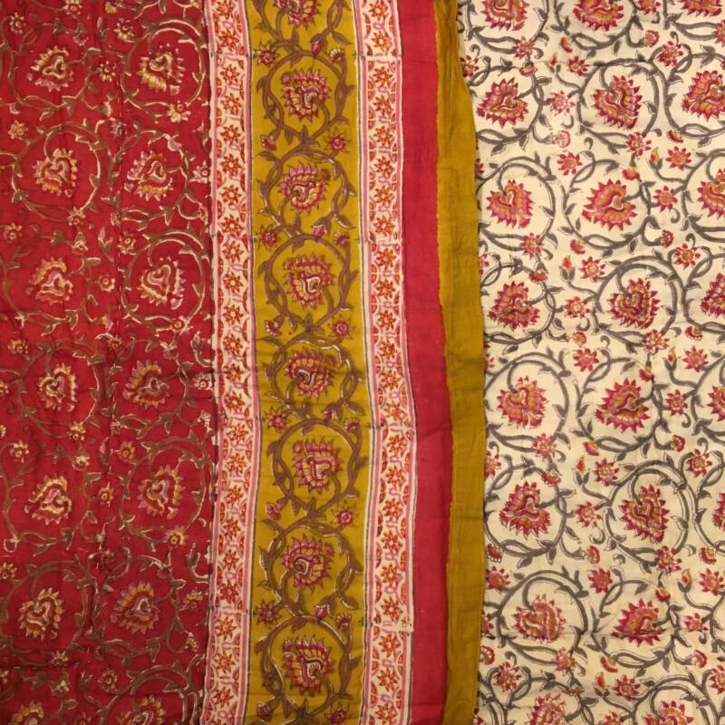 Onze prachtige handbedrukte collectie komt uit Radjastan in India, waar volgens een eeuwenoude traditie met teakhouten stempels stof wordt bedrukt. De stempels waarmee geprint wordt, zijn met de hand gesneden. Iedere kleurgang vereist een ander exemplaar, een patroon is dus opgebouwd uit meerdere stempels. Ze worden geproduceerd op een speciale locatie in Jaipur, waar op een fatsoenlijke wijze, voor mens en natuur gewerkt wordt. Dit maakt dat u dubbel kunt genieten van deze producten. Ze zijn verkrijgbaar in de meest verrassende dessins die zorgvuldig door ons zijn samengesteld.