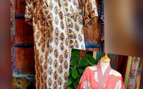 nu €55,-nu €39,-Een selectie aan kimono’s is afgeprijsd, de lange versie van poplin is nu €55,-, de kortere van katoenen voile €39,-