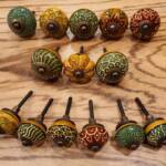 Ook zijn wij erg blij te kunnen melden dat de nieuwe collectie deurknoppen is gearriveerd. Iedere deurknop is in India zorgvuldig met de hand beschilderd, ze zijn € 4,75 per stuk. Er is voor ieder wat wils.