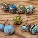 Naast bovenstaande deurknoppen, zijn er ook handbeschilderde haakjes en hendels verkrijgbaar.