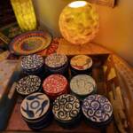 Daarnaast verkopen we een serie spiegels uit Marokko, de ene is traditioneel met beslagwerk en ingegraveerd patronen, de andere oogt meer modern en is verkrijgbaar in 3 vormen oog, druppel en rond. Beide series zijn leverbaar in messing en nikkelkleur en in verschillende formaten.