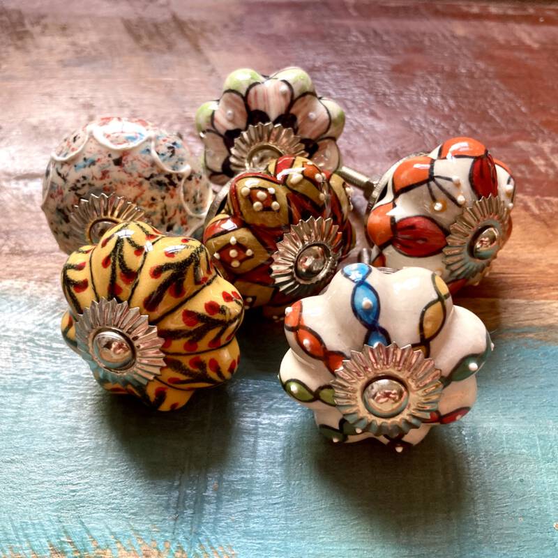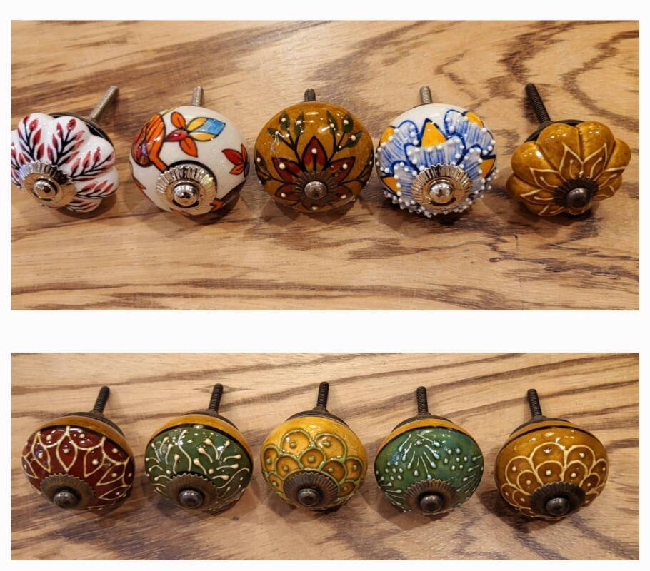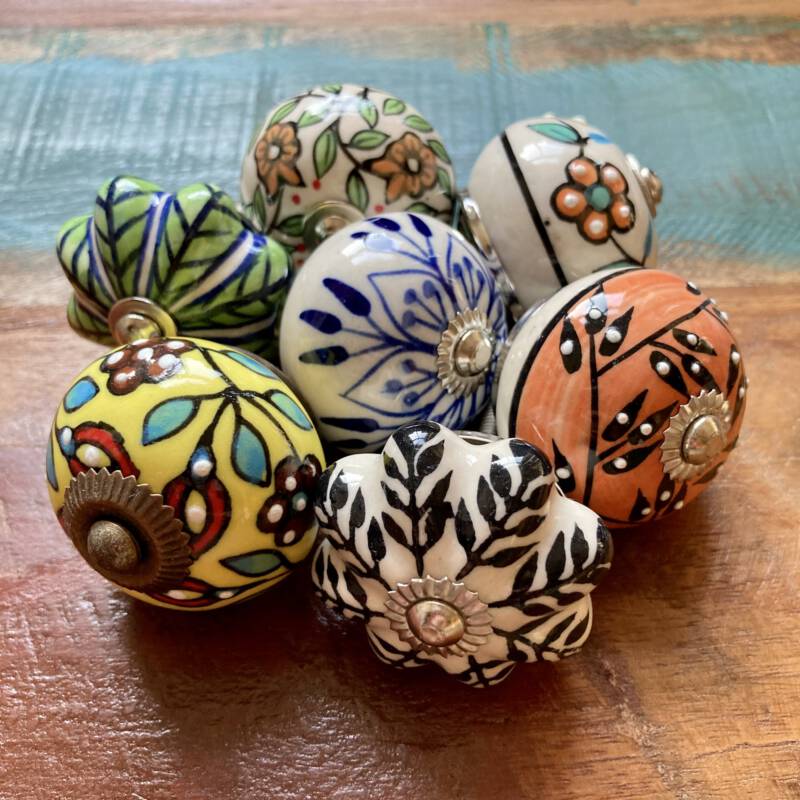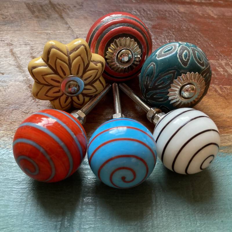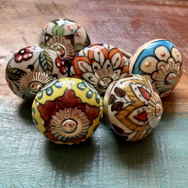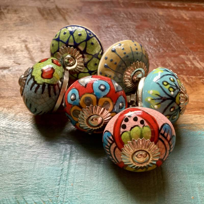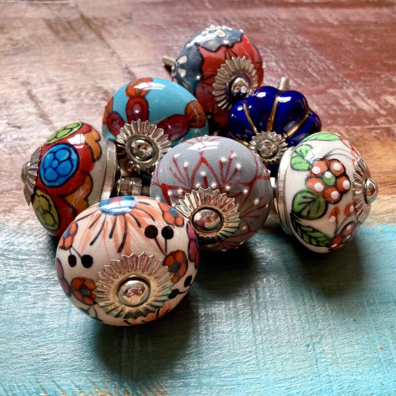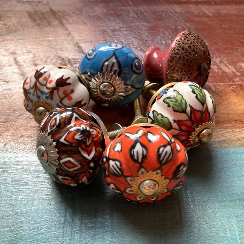 Ook zijn wij erg blij te kunnen melden dat de nieuwe collectie deurknoppen is gearriveerd. Iedere deurknop is in India zorgvuldig met de hand beschilderd, ze zijn € 4,75 per stuk. Er is voor ieder wat wils.