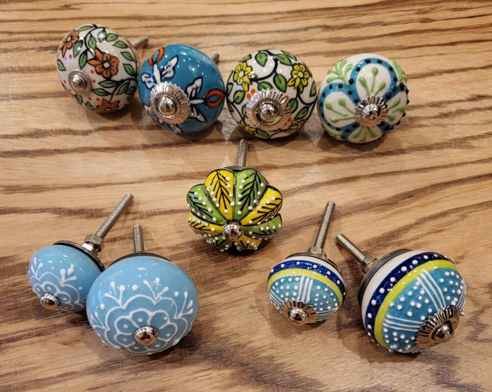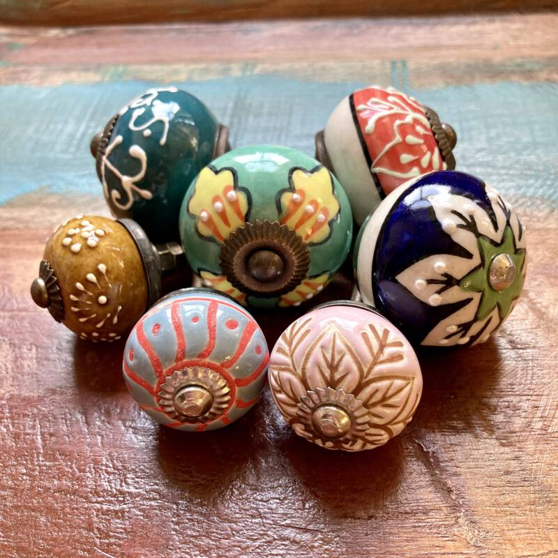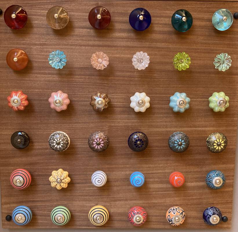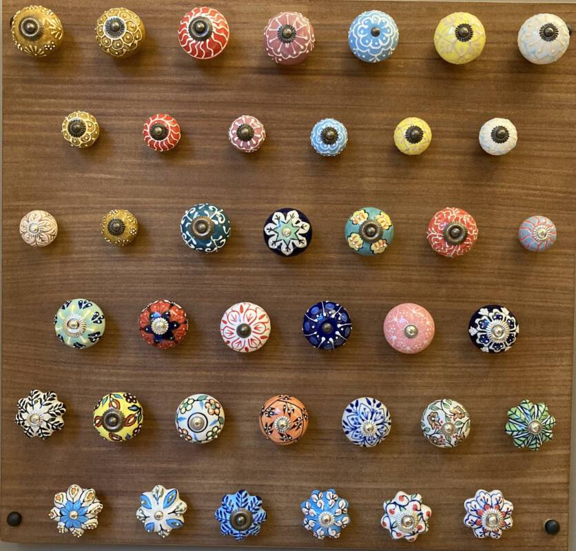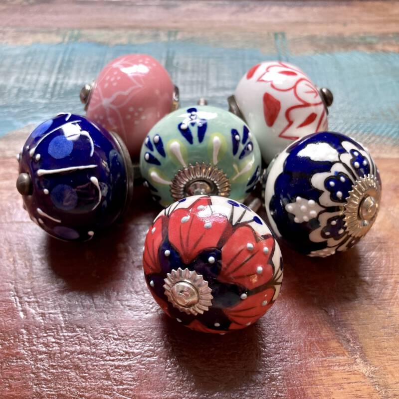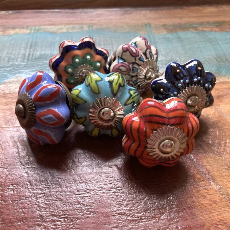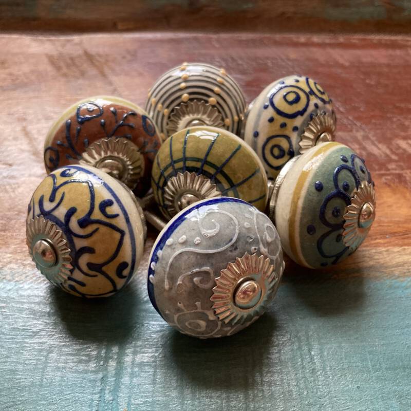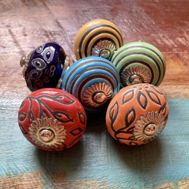 Ook zijn wij erg blij te kunnen melden dat de nieuwe collectie deurknoppen is gearriveerd. Iedere deurknop is in India zorgvuldig met de hand beschilderd, ze zijn € 4,75 per stuk. Er is voor ieder wat wils.