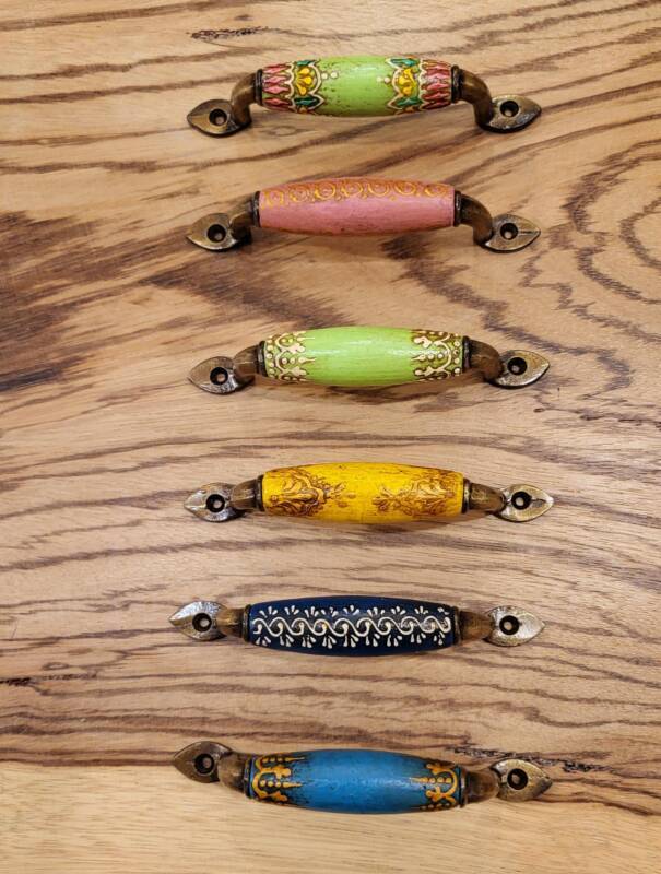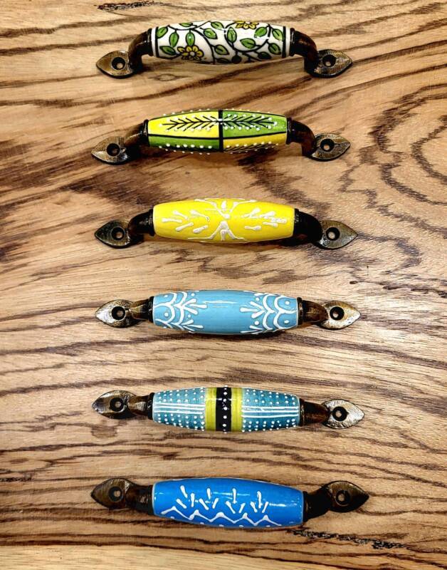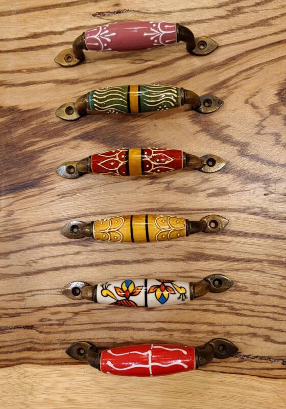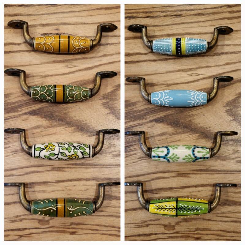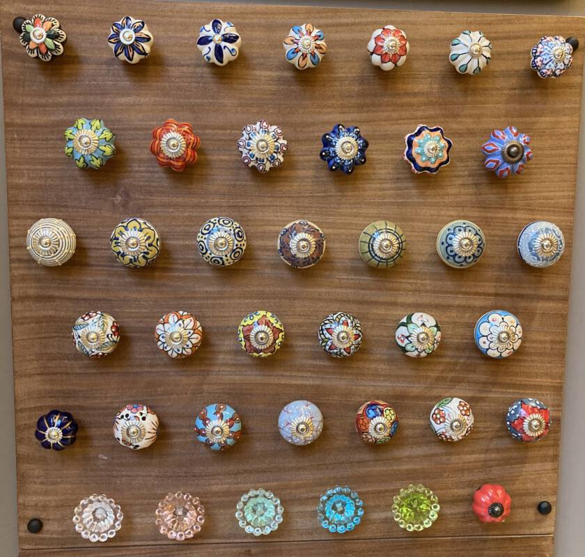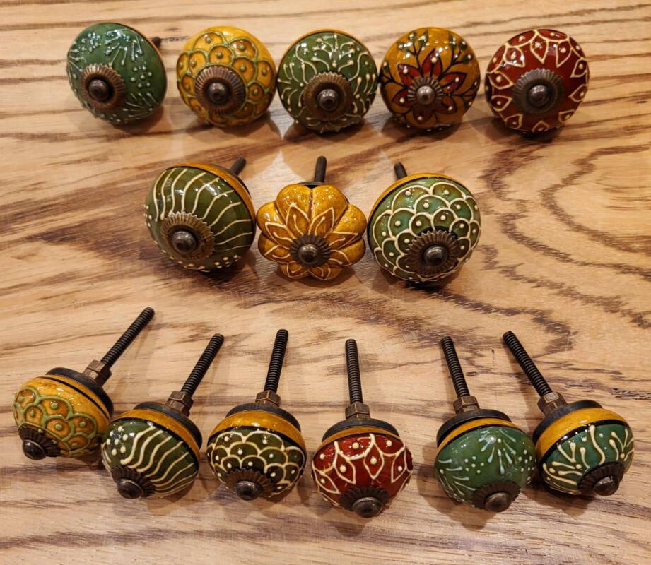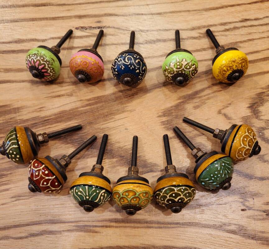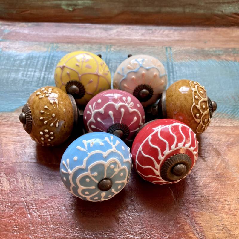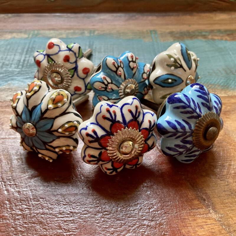 Ook zijn wij erg blij te kunnen melden dat de nieuwe collectie deurknoppen is gearriveerd. Iedere deurknop is in India zorgvuldig met de hand beschilderd, ze zijn € 4,75 per stuk. Er is voor ieder wat wils.