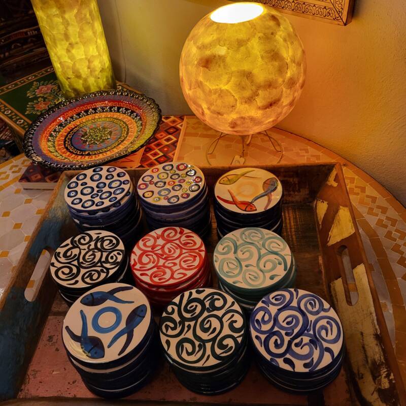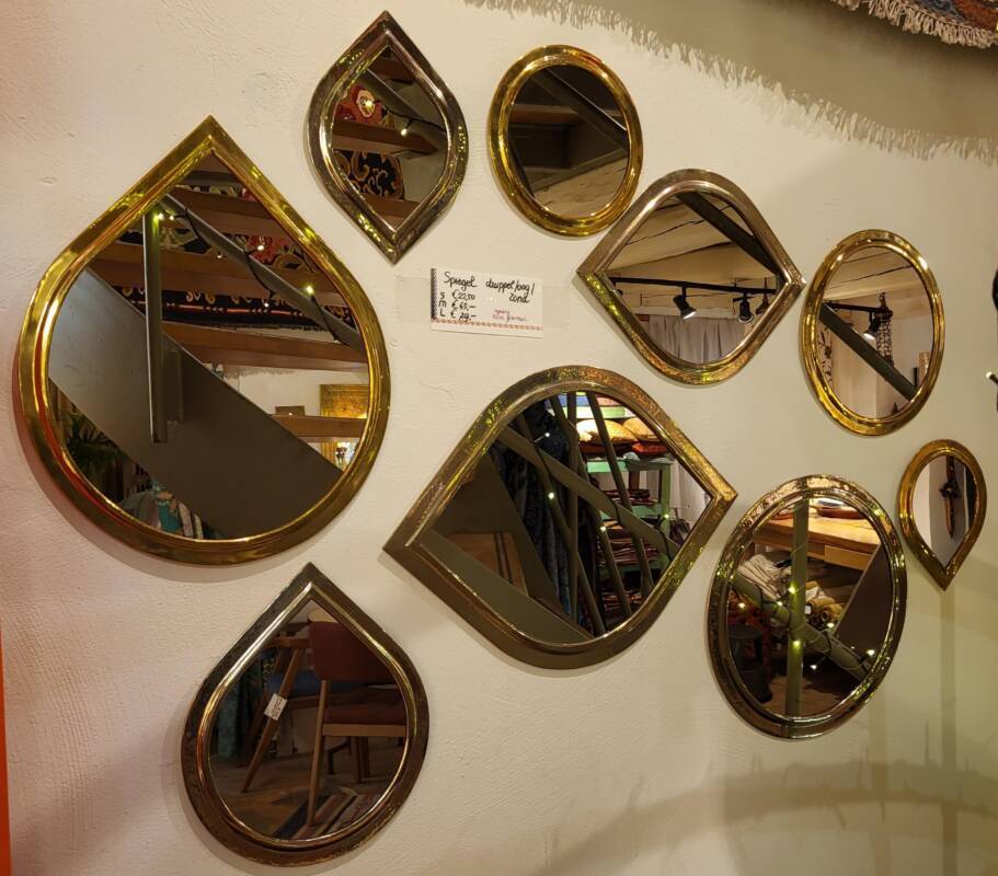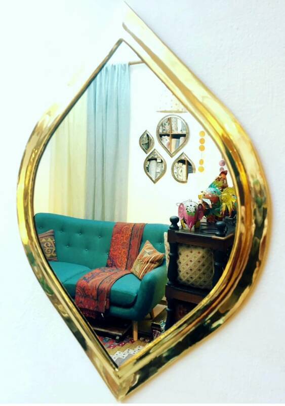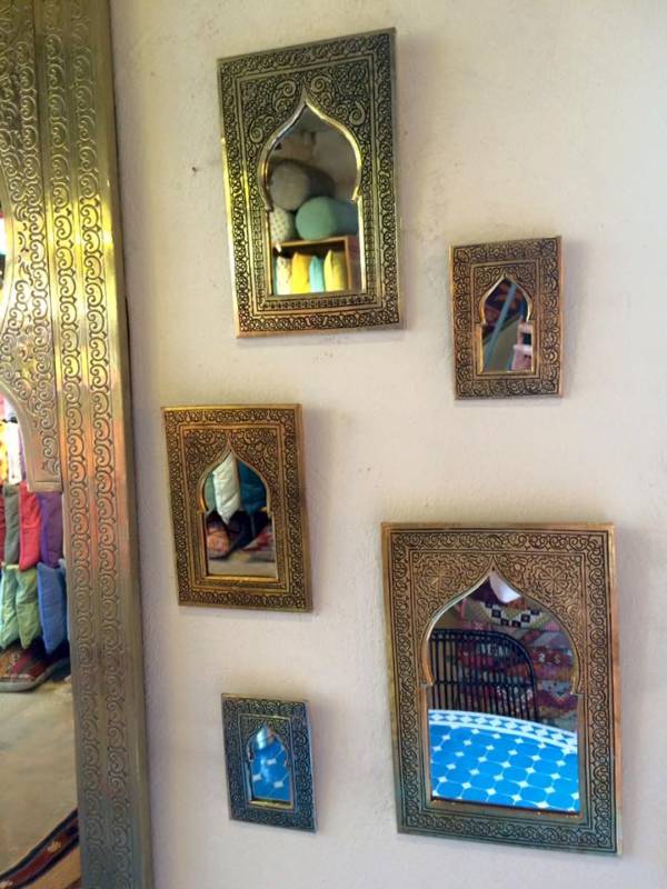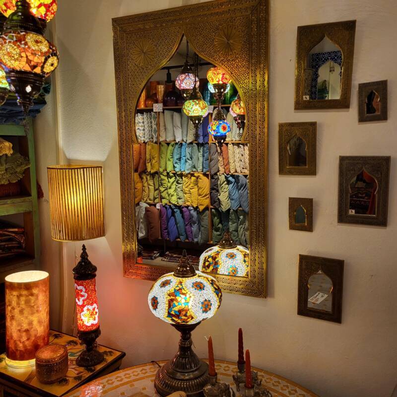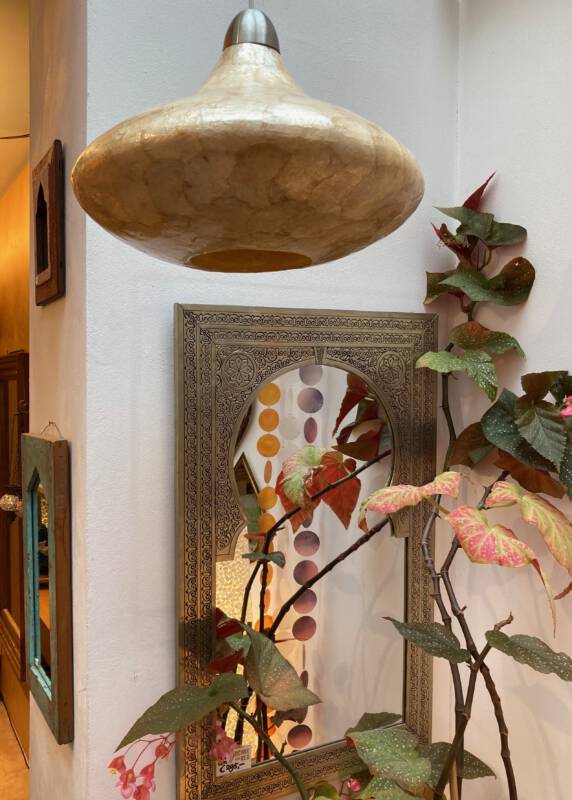 Daarnaast verkopen we een serie spiegels uit Marokko, de ene is traditioneel met beslagwerk en ingegraveerd patronen, de andere oogt meer modern en is verkrijgbaar in 3 vormen oog, druppel en rond. Beide series zijn leverbaar in messing en nikkelkleur en in verschillende formaten.