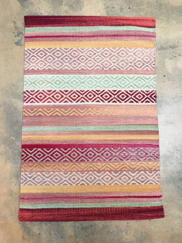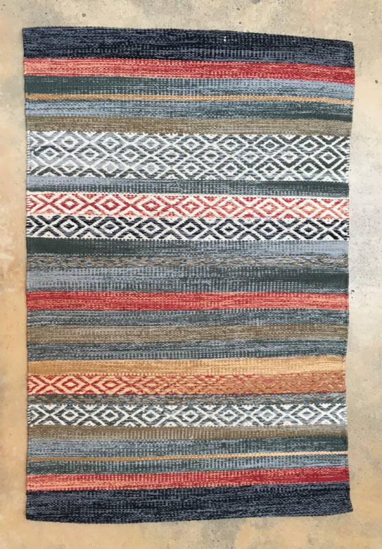Deze matten zijn zowel fraai als praktisch, gemaakt door een gespecialiseerd bedrijf uit Panipat in India. Zij houden rekening met milieu en arbeidsomstandigheden en voldoen aan de internationale richtlijnen hiervoor. Ze bestaan voor 95% uit katoenen draden, welke tye and dye geverfd zijn, daardoor ontstaan mooie kleurschakeringen. Een beetje geïnspireerd op de abrash techniek van de oude kelims. Ze zijn zeer makkelijk in onderhoud en kunnen gewoon in de wasmachine en daardoor geschikt voor zowel badkamer, keuken, hal als slaapkamer. En zoals u van ons gewend bent, verkrijgbaar in vele kleuren en patronen. Leverbaar in de maten 60 x 90 cm €32,50 en 75 x 140 cm €59,- per stuk.