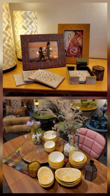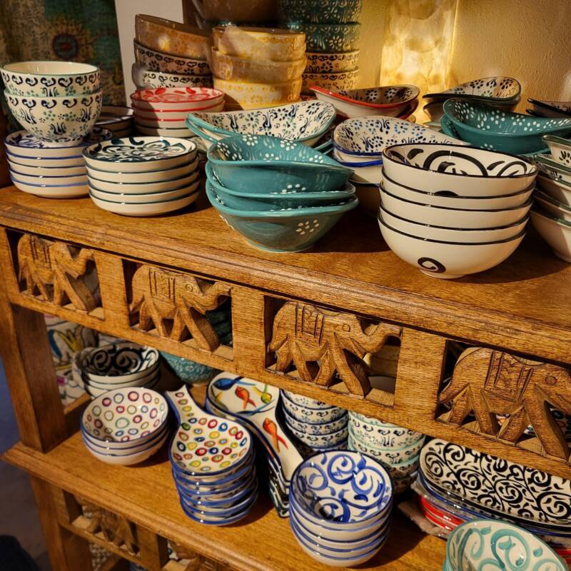 De finishing touch wordt gemaakt door diverse pluimage; een handbeschilderd zeepbakje of doosje uit India, een mozaiek waxinelichthouders of benen doosje uit Turkije, een schelpenstring uit de Filipijnen of bijvoorbeeld een kleurrijk fotolijstje uit India. Onder deze rubriek vallen dus de vele kleine accessoires die functioneel en verfraaiend zijn. Van de producten is er een aantal vast onderdeel van de collectie, maar ze kunnen ook seizoensgebonden zijn. We zijn ook liefhebbers van aardewerk en porselein, liefst handgemaakt, op dit moment kunt u beiden vinden in onze winkels.