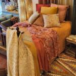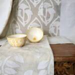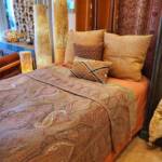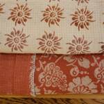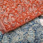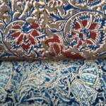 Gevoerde spreien en kussens van blockprint fluweel. Wat dit fluweel heel erg bijzonder maakt, is dat het 100% katoen is! Ook is het doorgaans lastig om te bedrukken, want textielverf wordt snel hard. Deze spreien zijn daarentegen heerlijk zacht.