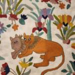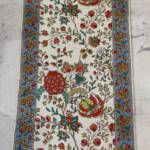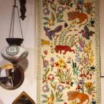 Deze volledig geborduurde kleden, zijn met de handgemaakt op dezelfde manier als de crewelstoffen. Alleen is hier geen enkel stukje katoen niet geborduurd! Dit maakt deze wanddoeken tot ware kunstwerken, gemaakt met een in het oog springende verfijning. Aan de achterkant extra verstevigd met een katoenen canvasstof. Ze zijn verkrijgbaar in drie verschillende patronen. De afmeting is 68 x 140 cm en de prijs voor een wandkleed is slechts € 135,-.