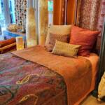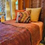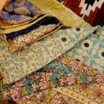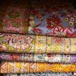 Deze kantha’s hebben een wat kleiner formaat en zijn daardoor uitstekend te gebruiken als, plaid, 1-persoons sprei, voor het voeteneind, of als wandkleed, enz. Ook hier is wederom elke sprei uniek, verkrijgbaar voor € 95,- per stuk.