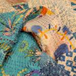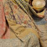 Kantha is een techniek waarbij twee lagen textiel losjes met de hand doorgestikt worden, dit geeft een mooie nonchalante look. Veelal textielresten worden voor deze soepele spreien gebruikt, zo ontstaat een patchwork doek bestaande uit verschillende lappen stof. Hierdoor is ieder exemplaar uniek. Dit ruime formaat is ideaal voor over een 2-persoons bed. Verkrijgbaar voor € 165,- per stuk.