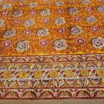 Bovenstaande spreien zijn handbeschilderd met natuurlijke verfstoffen. Kalamkari, het woord is onstaan uit het Perzisch van kalam (pen) en kari (craftsmanship) en vind zijn oorsprong in het Golconda Sultanaat. Een zeer oude teken techniek met een tamarind pen vormt naast blockprinting de basis voor deze bijzondere doeken, welke gemaakt zijn van 100% katoen. Buffelmelk en kleuren gemaakt van planten (waaronder wortels, zaden, fijn gemalen bloemblaadjes) en mineralen zijn de ingredienten voor het schilderwerk, de kerspruim wordt gebruikt voor fixatie. De lokale kunstenaars uit Zuid-India halen hun inspiratie voor de patronen uit de natuur. Kalamkari staat bekend als een “helende stof “, de motieven en magische vormen weerspiegelen spiritualiteit en vormen een helend aura. Wij zijn ontzettend trots deze spreien in onze collectie te hebben, weer iets bijzonders voor de liefhebber!