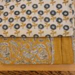 Deze bijzondere spreien zijn gemaakt in een samenstelling van bamboe/ viscose en katoen. Een soepelvallend, zacht en vochtabsorberend materiaal. Decoratief door de fraaie prints en tweezijdig te gebruiken. Sommige van deze prints zijn handbedrukt, andere zijn gemaakt met een digitale printmachine. Uitzonderlijk dat wij dit konden bestellen in een kleine oplage en dankzij de duurzame relatie die we hebben opgebouwd met onze producent in Jaipur. Dit bedrijf heeft een historie van blockprinting in textiel en papier, maar schuwen het niet om ook te innoveren. Zij hebben hun eigen eigen winkels, produceren echter ook voor andere firma’s, waaronder wij. Kortom een prettig en verantwoord bedrijf waar alles met oog voor mens en milieu gemaakt wordt.