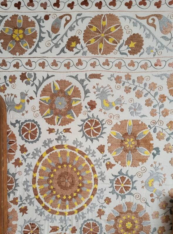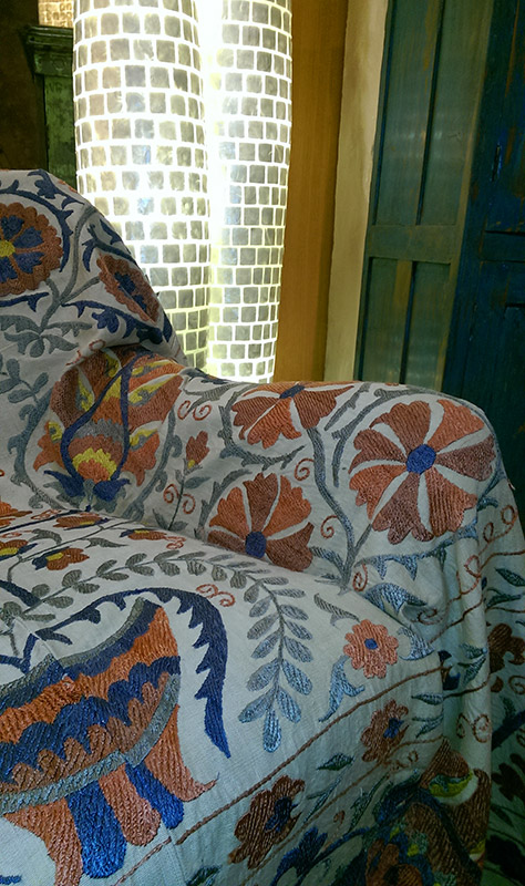 Op onze vele reizen zijn we altijd weer verrast door de mooie (oude) textiel die we dan tegen komen. Zodoende hebben we een unieke collectie wollen plaids, spiegeltjesdoeken en zijden suzani’s die het ook als wandkleed prachtig doen. In de loop van de tijd zal daarin telkens weer wat nieuws binnenkomen en dit maakt een bezoek aan onze winkel zeker de moeite waard.