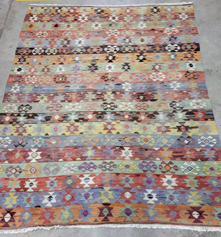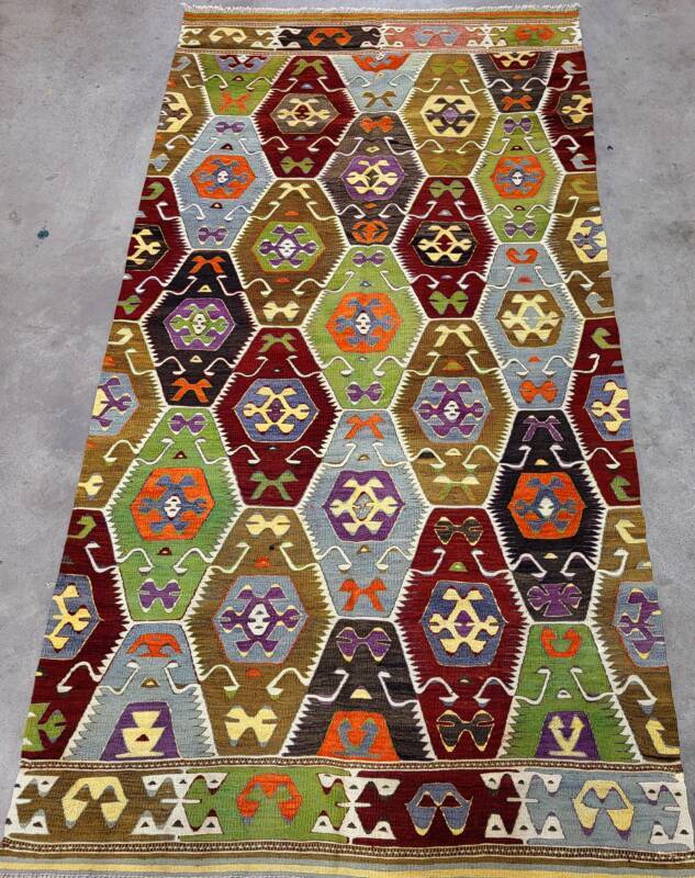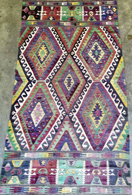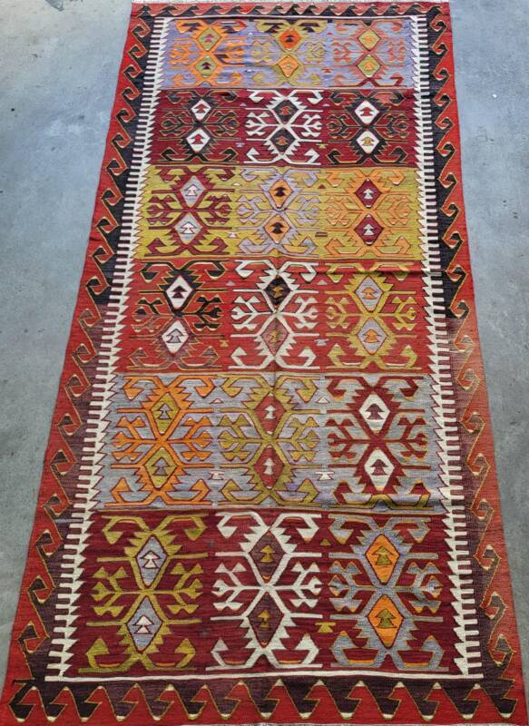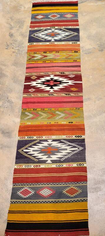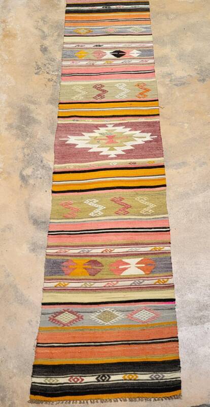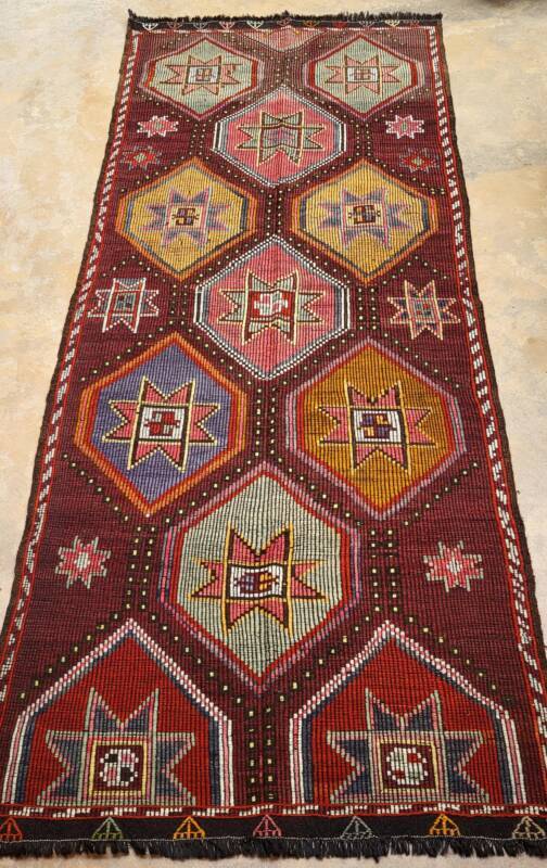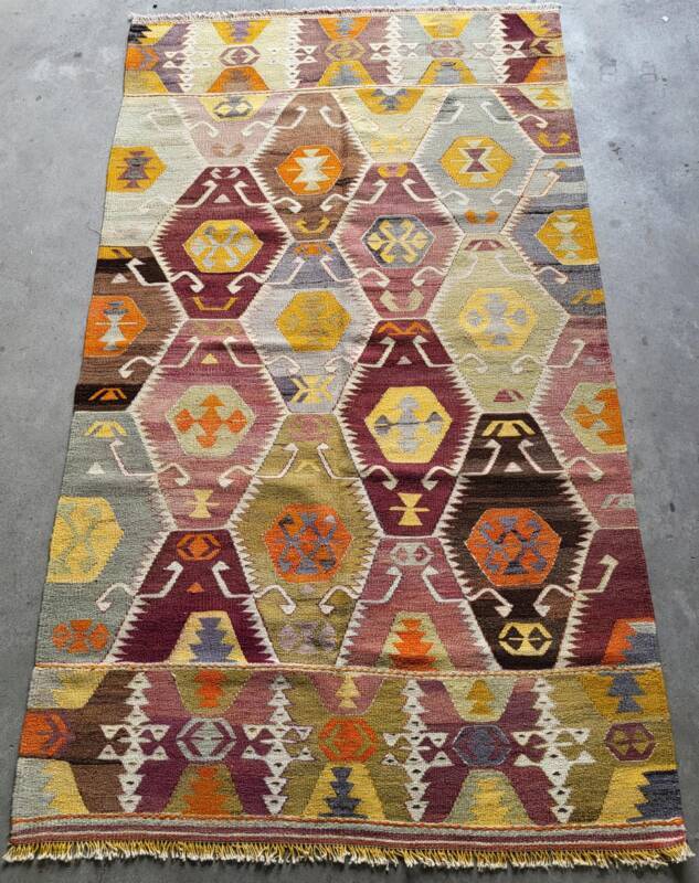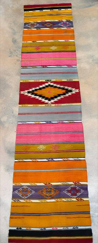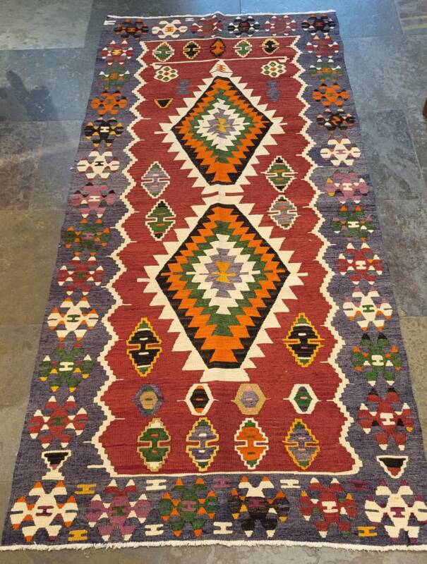 Gedurfde, uitgesproken patronen en schitterende kleuren zijn kenmerkend voor kelims. Wij noemen het daarom schilderijen voor op de vloer of aan de muur!