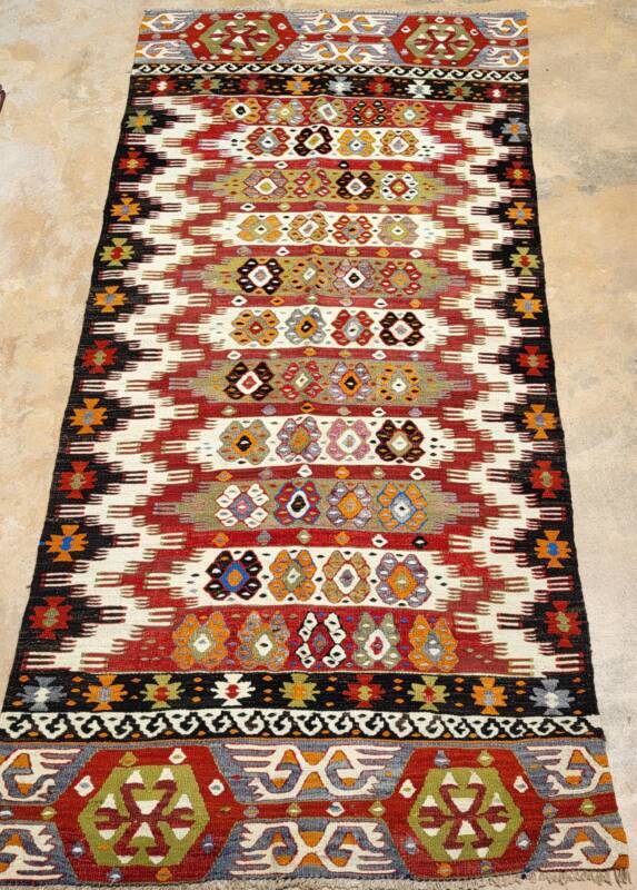 Al jaren gaan wij naar Turkije en zoeken met zorg en liefde naar exemplaren, die toegevoegd kunnen worden aan onze verzameling. Het is iedere keer weer een verrassing wat we nog kunnen vinden. Het ene jaar zijn het vooral gestreepte kelims, het andere jaar zijn het voornamelijk cicim kleden (op gobelin techniek geïnspireerde geweven kleden) of juist kleden met veel geometrische patronen. Zo hebben wij in de loop van de tijd een uitgebreide, gevarieerde en unieke collectie opgebouwd.