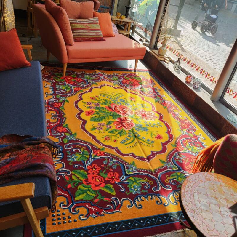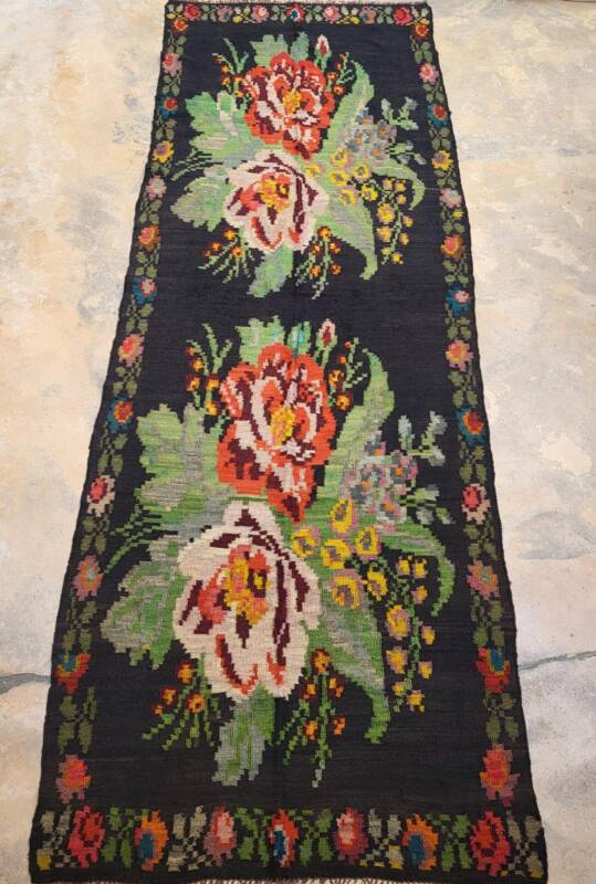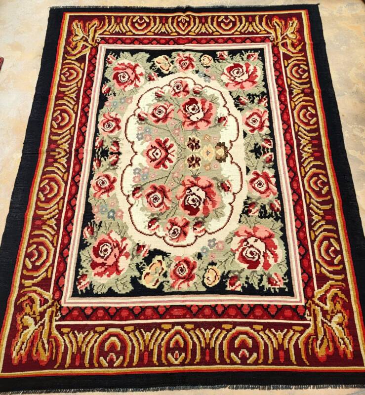 De rozenkelim is een met de hand, plat geweven vloerkleed en komt van oorsprong uit de Balkan. Onze collectie komt uit Moldavië. Door pure huisvlijt en voor het vergaren van de bruidsschat werd door iedere familie een mooie collectie opgebouwd. We zijn kieskeurig en zoeken naar de bijzondere stukken, zoals kleden rijkelijk gevuld met bloemen of de exemplaren met een lichte kleur als ondergrond, heel zeldzaam.