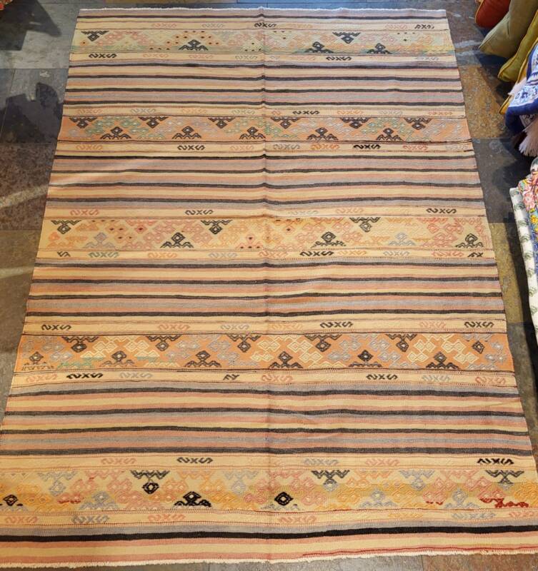 Onze winkels in Arnhem en Nijmegen hebben een zeer uitgebreide collectie kelims uit Turkije met daarnaast een aantal rozenkelims uit Moldavië. Deze van oorsprong oude kleden zijn volgens een eeuwenoude traditie, op ambachtelijke wijze, thuis of voor de tent door vrouwen geweven. Gemaakt van handgesponnen wol, handmatig en in sommige gevallen nog met plantaardige verfstoffen geverfd. Daardoor is er een zeer afwisselende gemêleerdheid bij de wol in de kleden te zien, geheten “abrash”. Dit in combinatie met ingenieuze weeftechnieken, geeft een kleed zijn bijzondere karakter, waarbij de schoonheid in de imperfectie zit.