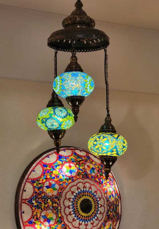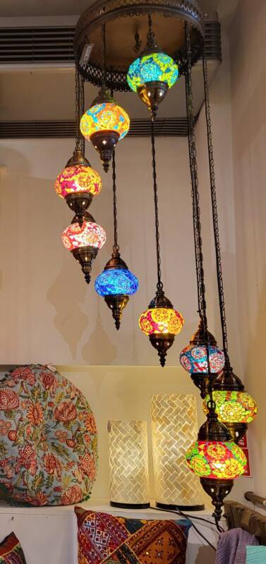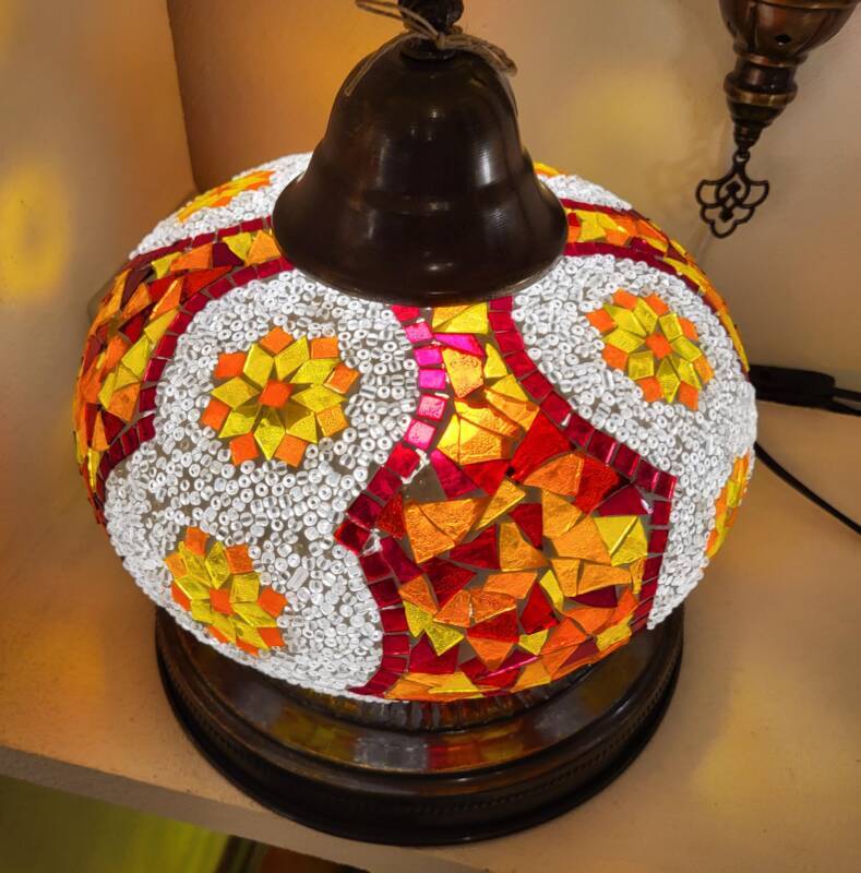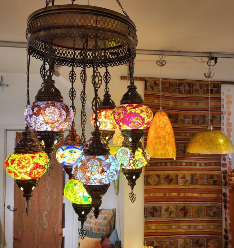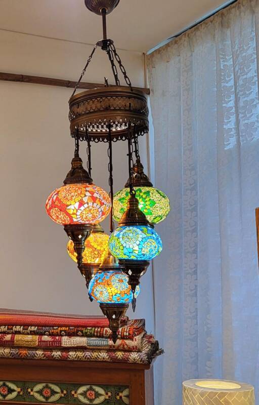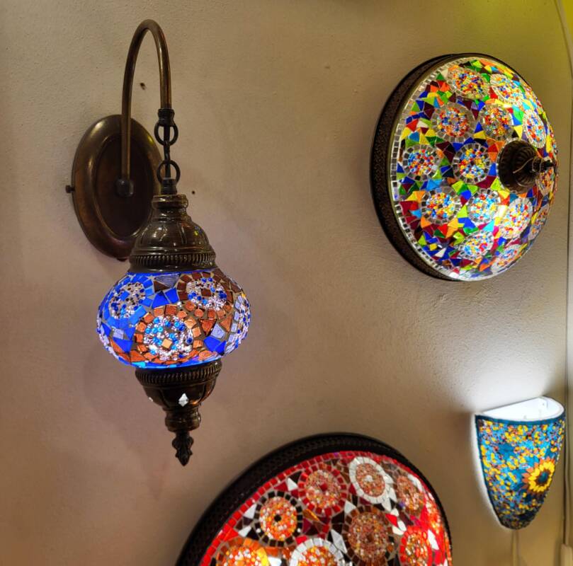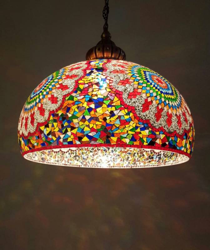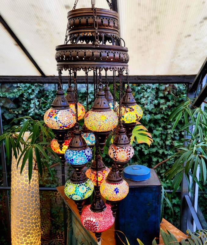 Deze sprookjesachtige, kleurrijke lampen worden speciaal voor ons gemaakt in Turkije. Ze zijn geïnspireerd op de vele kleine lampjes die de plafonds van moskeeën en paleizen sieren. Ieder mozaïek bolletje van de mozaïeklamp wordt met de hand gemaakt, er is een grote variatie in patronen en kleuren, die wij zelf ontwerpen. We beschikken over een eigen werkplaats, waarin we de lampen afbouwen in iedere gewenste uitvoering. U kunt aangeven hoeveel armen u wilt, welke lengte, vorm en combinatie van kleuren. Zo creëert u eenvoudig de lamp van uw dromen.