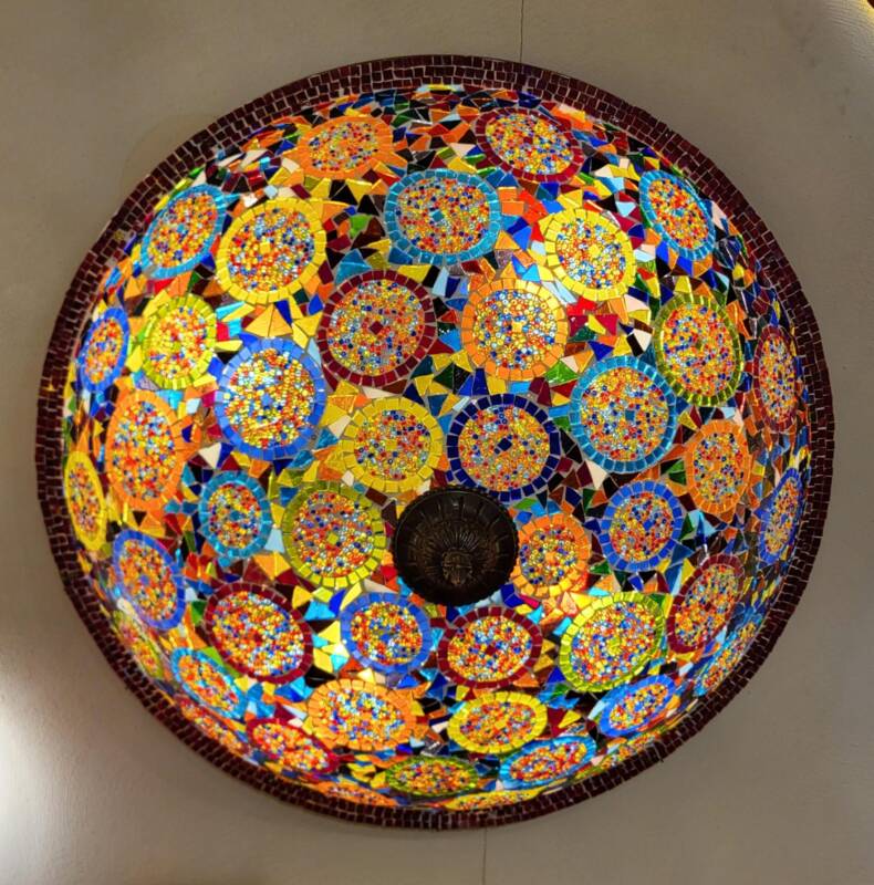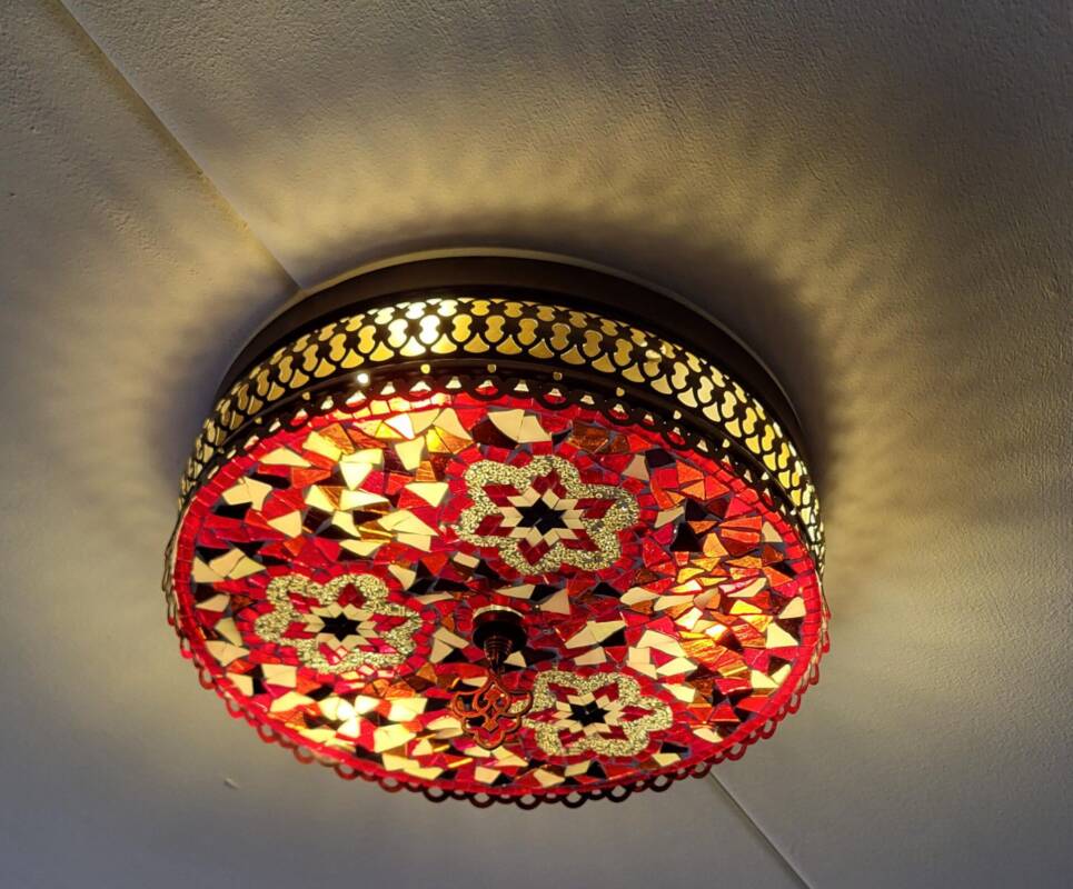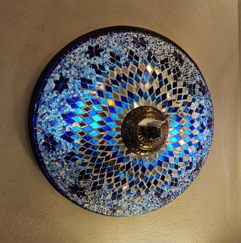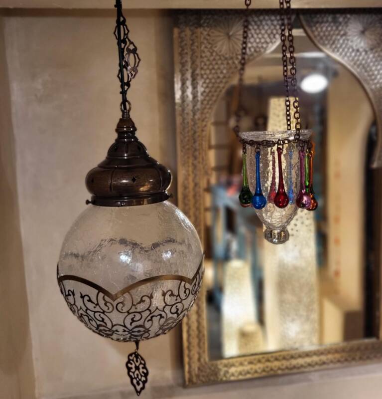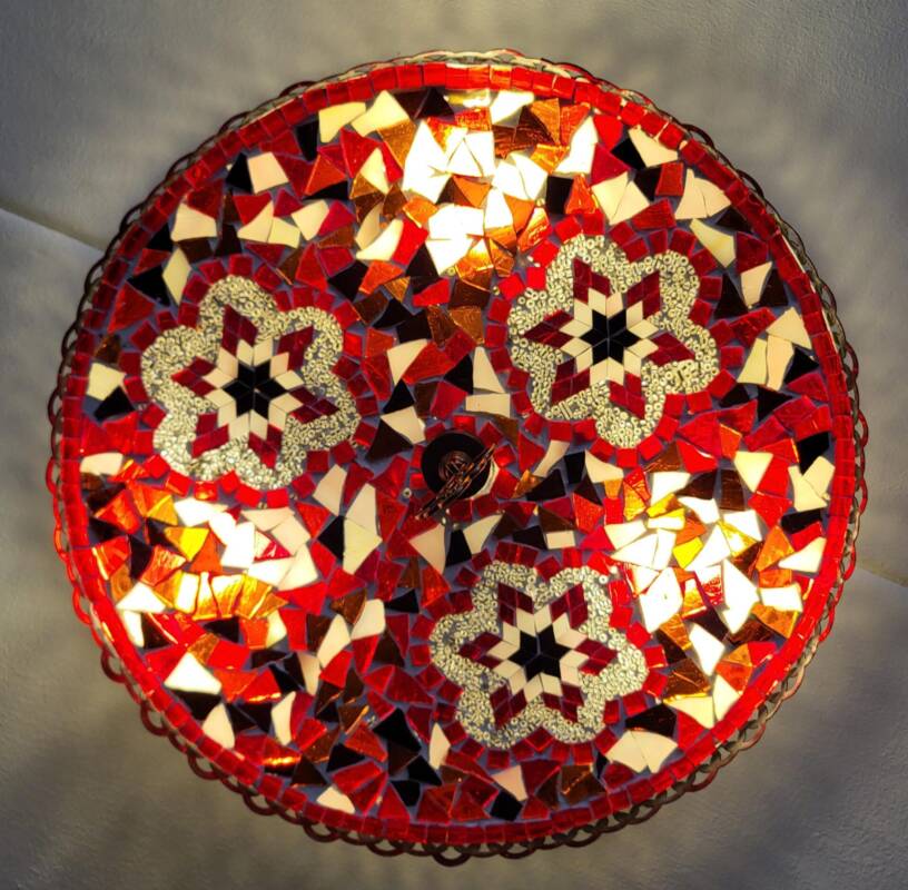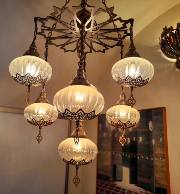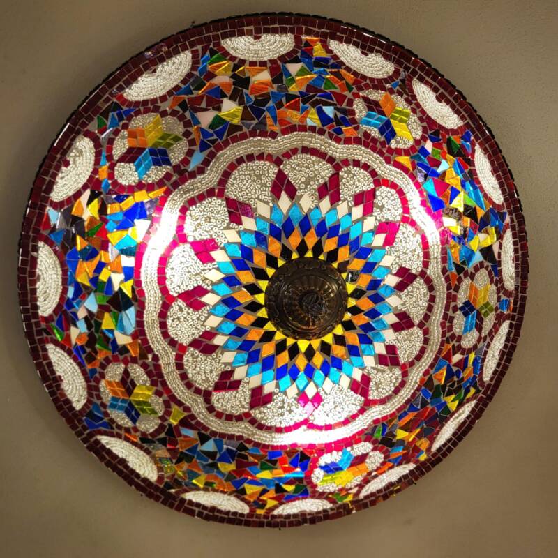 Deze sprookjesachtige, kleurrijke lampen worden speciaal voor ons gemaakt in Turkije. Ze zijn geïnspireerd op de vele kleine lampjes die de plafonds van moskeeën en paleizen sieren. Ieder mozaïek bolletje van de mozaïeklamp wordt met de hand gemaakt, er is een grote variatie in patronen en kleuren, die wij zelf ontwerpen. We beschikken over een eigen werkplaats, waarin we de lampen afbouwen in iedere gewenste uitvoering. U kunt aangeven hoeveel armen u wilt, welke lengte, vorm en combinatie van kleuren. Zo creëert u eenvoudig de lamp van uw dromen.