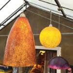 Er zijn tevens cilindervormige lampen verkrijgbaar van 30 cm en 40 cm hoogte en 15 cm doorsnede. Deze lampen kunnen zowel hangend als staand gebruikt worden. Dit geldt trouwens ook voor voor onze bollampen van 25 en 35 cm doorsnede, dat geeft een “werelds” effect. Bij een 3-arm kunnen de bollen ook heel leuk als een trosje bij elkaar worden gehangen, dan ontstaat een bundeling van licht. De koepelvormige lampen (47 cm ø) en de conische lampen (29 cm ø) zijn heel geschikt om een eettafel te verlichten. Daarbij is er ook nog een druppelvorm in twee maten en een lamp in donut-vorm verkrijgbaar. (35 cm ø).