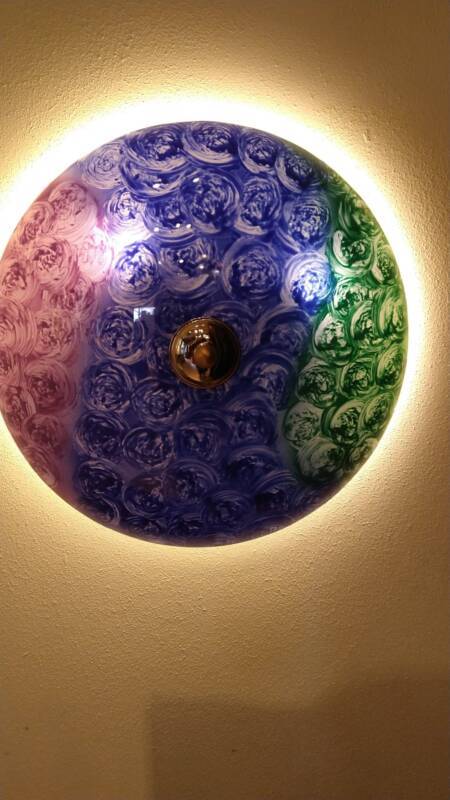Er zijn tevens platte ronde lampen verkrijgbaar van 30 cm en 50 cm welke zowel aan het plafond als aan de wand gemonteerd kunnen worden. Ze zijn er in diverse kleuren, evenals de halve wandlamp fungerend als een uplighter. Geeft een heel leuk effect en een beetje ouderwets.