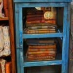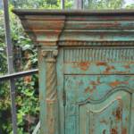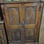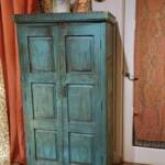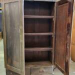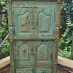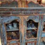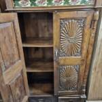 De achterkant van een kast verteld trouwens een geheel eigen verhaal. Wanneer deze uit een metalen plaat bestaat, werd hij veelal gebruikt in de keuken voor eten, dit geeft namelijk een soort van ventilatie systeem. Sommige kasten hebben aan de achterkant hele massieve houten panelen (soms met de schors er nog aan), deze werden door de dorpelingen zelf gefabriceerd, simpelweg door het bos in te lopen en een boom te kappen. Dat was dan wel in een andere tijd, zo’n 50 tot 80 jaar geleden. ’s Avonds na een lange drukke dag werd er rondom het kampvuur, bijgepraat en ondertussen hout bewerkt terwijl de kinderen zich vermaakten met zelfgemaakte speelgoed. Indien de exemplaren die we kunnen vinden nog in goede staat zijn, kiezen we ervoor deze orgineel te laten, zo kan een kast met een houten achterkant dus echt loodzwaar zijn. Naast de collectie in onze winkels, hebben we ook nog een aantal stukken in de opslag staan.