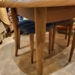 De binnenkant van het tafelblad bestaat uit MDF, de buitenkant is afgewerkt met een laagje PVC. Dit maakt het gemakkelijk te onderhouden. De poten van deze tafel zijn vervaardigd uit massief hout, van de haagbeuk.