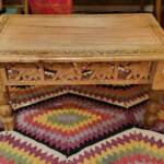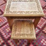 Deze bijzondere handgesneden/gegraveerde bijzettafels en salontafels, zijn tevens vervaardigd uit duurzaam mangohout. Dit hardhout wordt gebruikt wanneer de snel groeiende mangoboom geen vruchten meer draagt, zo krijgt het resthout een mooie andere bestemming en wordt er ruimte gemaakt voor nieuwe aanplant. Het heeft een rustiek uiterlijk, welke zich makkelijk laat combineren met ieder interieur. Bij de afwerking van het hout is gekozen voor een matte naturel of een antique finish, sommige uitvoeringen zijn in beiden kleurstellingen verkrijgbaar.