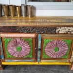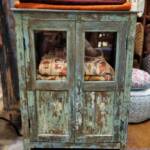 Een oude Indiase kast kan een mooi contrast geven in een modern interieur. Wij zoeken zorgvuldig naar de speciale, solide en unieke stukken. Geen gelikte kasten van teakhout, maar sfeervolle robuuste exemplaren met vaak verrassende details zoals gedecoreerd met tegels, wat nog een overblijfsel is van de Portugese invloed. Daarnaast verkopen we ook klein meubelen zoals, (geld) kisten, tafels gemaakt van omgetoverde babywiegjes en originele graanbakken. Met dit soort objecten haalt u echt iets bijzonders in huis.