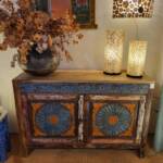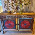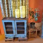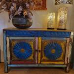 Een eigenzinnig object in uw kamer zijn deze handbeschilderde kasten uit Jodhpur (India). Ze zijn overladen met traditionele schilderingen van bloemen, dieren en miniatuur afbeeldingen in diverse kleuren, gemaakt van stevig mangohout. Heel goed toepasbaar in de botanische sfeer met onze behoefte aan natuur. Naast deze kasten, zijn er ook luikspiegels, vazen, en tafels met een granieten blad in diverse kleurstellingen verkrijgbaar.