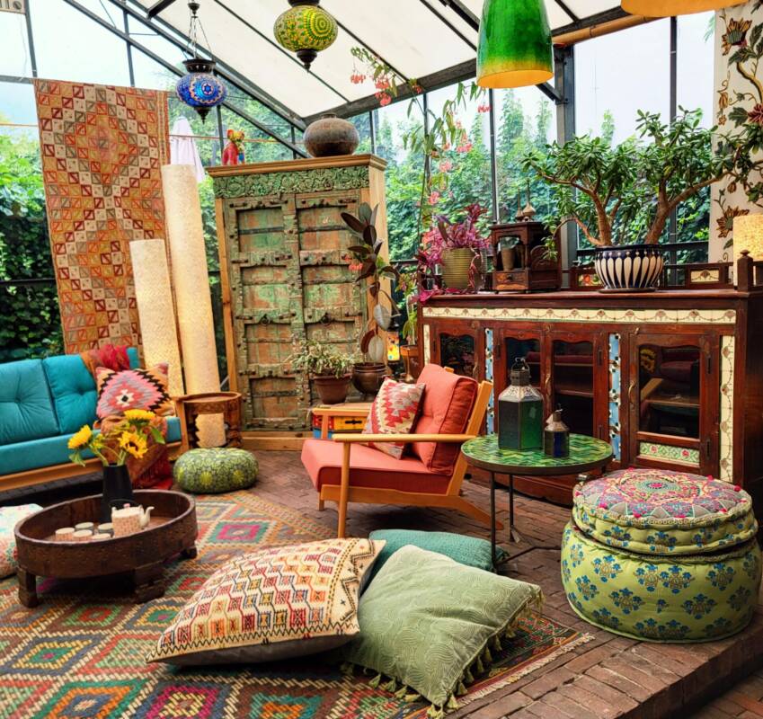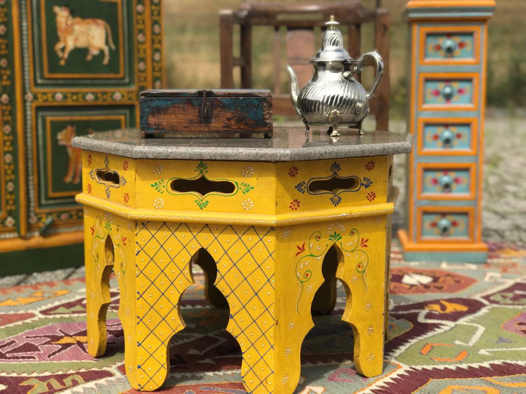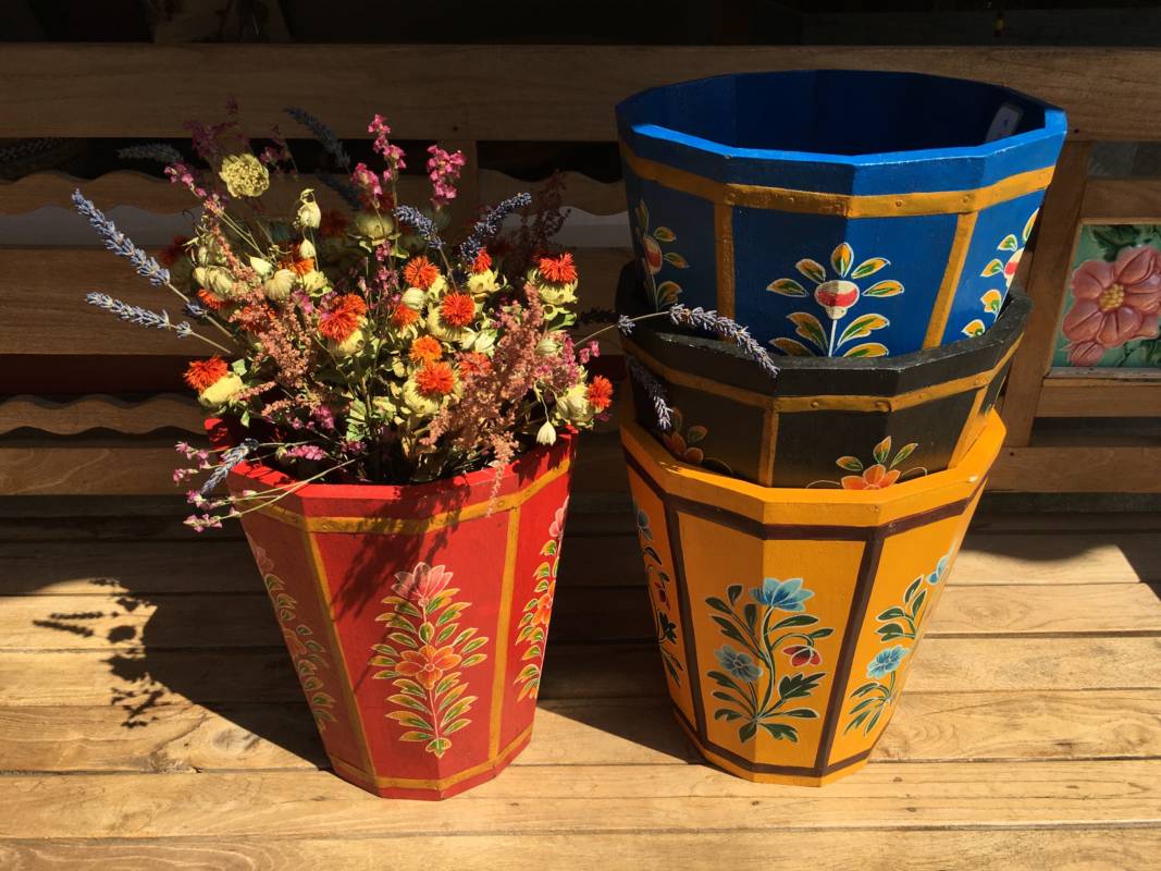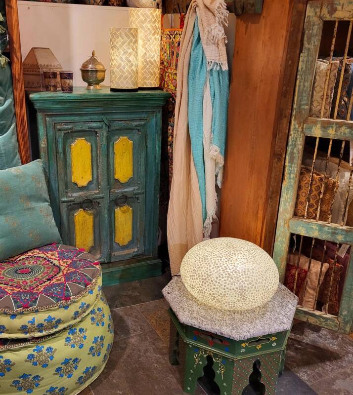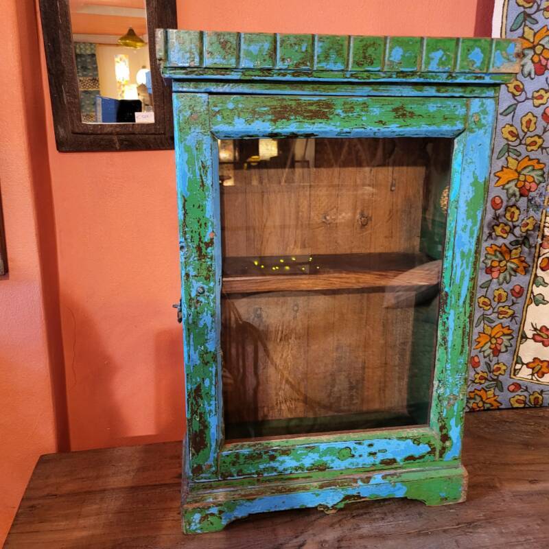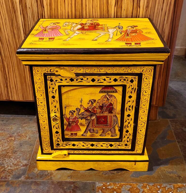 Een eigenzinnig object in uw kamer zijn deze handbeschilderde kasten uit Jodhpur (India). Ze zijn overladen met traditionele schilderingen van bloemen, dieren en miniatuur afbeeldingen in diverse kleuren, gemaakt van stevig mangohout. Heel goed toepasbaar in de botanische sfeer met onze behoefte aan natuur. Naast deze kasten, zijn er ook luikspiegels, vazen, en tafels met een granieten blad in diverse kleurstellingen verkrijgbaar.