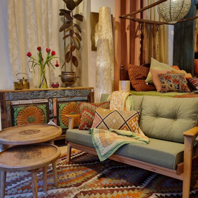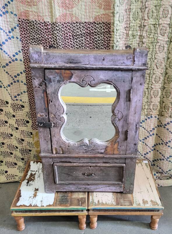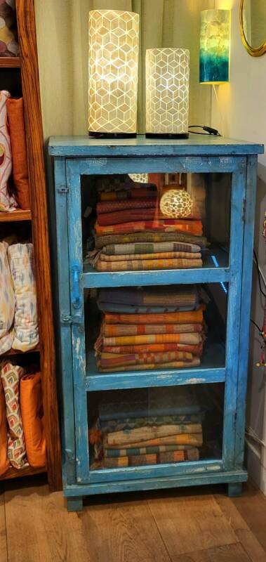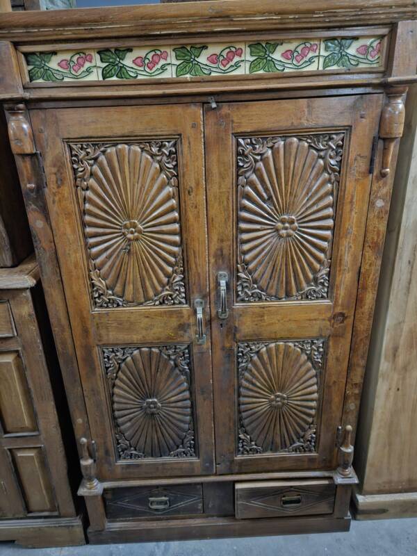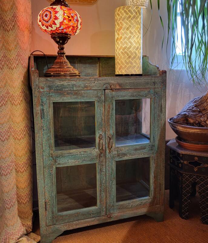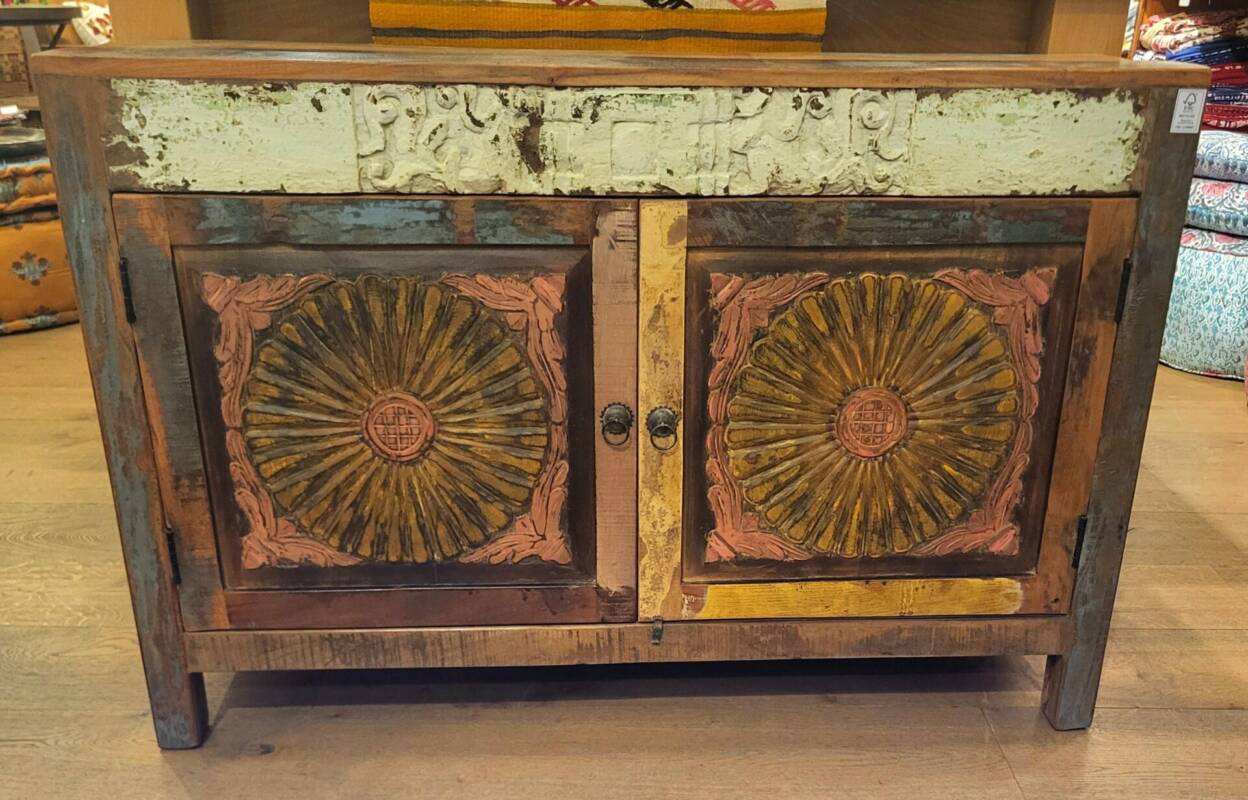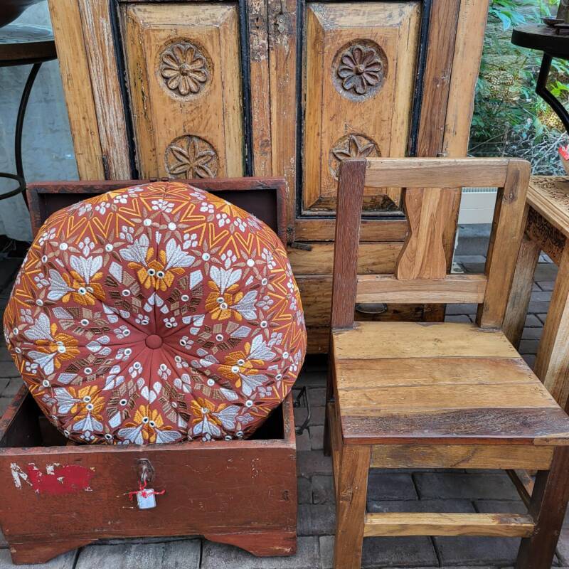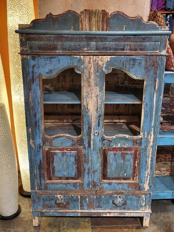 Een oude Indiase kast kan een mooi contrast geven in een modern interieur. Wij zoeken zorgvuldig naar de speciale, solide en unieke stukken. Geen gelikte kasten van teakhout, maar sfeervolle robuuste exemplaren met vaak verrassende details zoals gedecoreerd met tegels, wat nog een overblijfsel is van de Portugese invloed. Daarnaast verkopen we ook klein meubelen zoals, (geld) kisten, tafels gemaakt van omgetoverde babywiegjes en originele graanbakken. Met dit soort objecten haalt u echt iets bijzonders in huis.