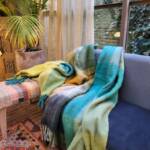 Met deze multicolor plaids van acryl en een beetje wol kun je eindeloos combineren. Door de diverse gekleurde draden welk geverfd zijn met een “tye and dye” techniek zijn deze plaids zeer orgineel. Het formaat is 125 x 180 cm en ze kosten € 69,- per stuk.
