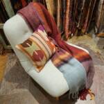 Er zijn mooie kleurrijke plaids die op de ambachtelijke Indiase weefgetouwen worden gemaakt volgens traditionele technieken, echter met innovatief kleurgebruik en in eigentijdse dessins. In deze plaids wordt wol of linnen gecombineerd met de heldere kleuren van zijde. Een lust voor het oog, ze staan prachtig op de bank of een stoel. Sommige klanten gebruiken ze zelfs als sprei of tafelkleed. De smallere sjaaluitvoering wordt vaak gebruikt als tafelloper. De plaids zijn € 145,- per stuk en hebben een formaat van 140 x 185 cm. De sjaals kosten 79,- per stuk.