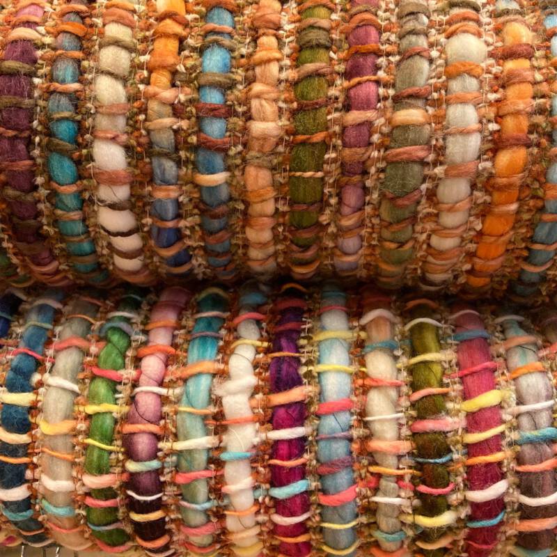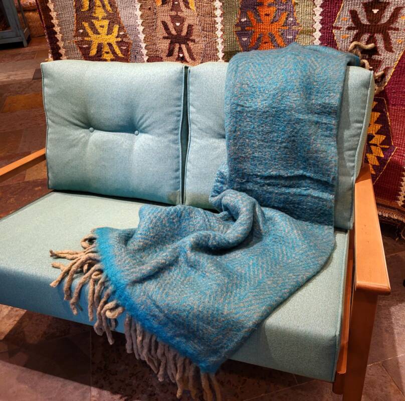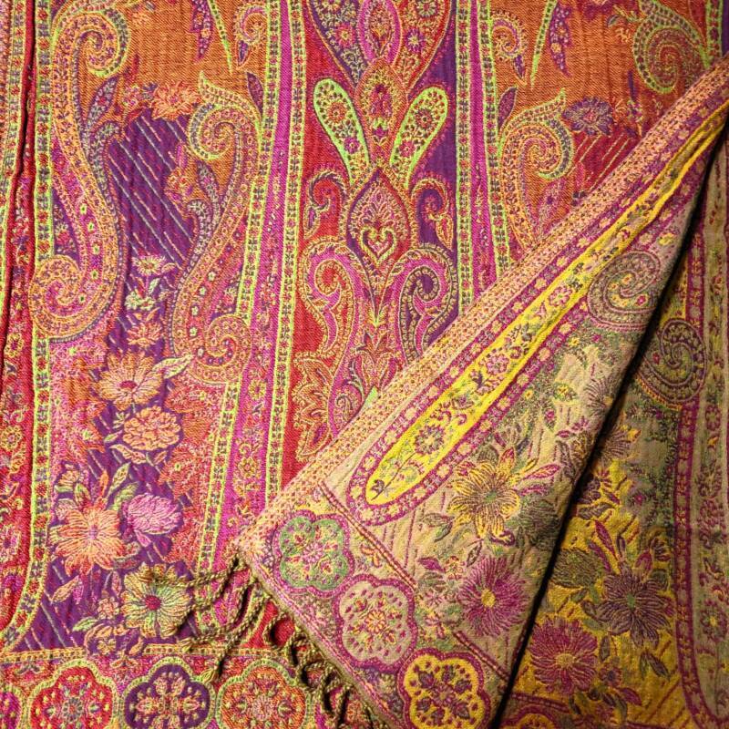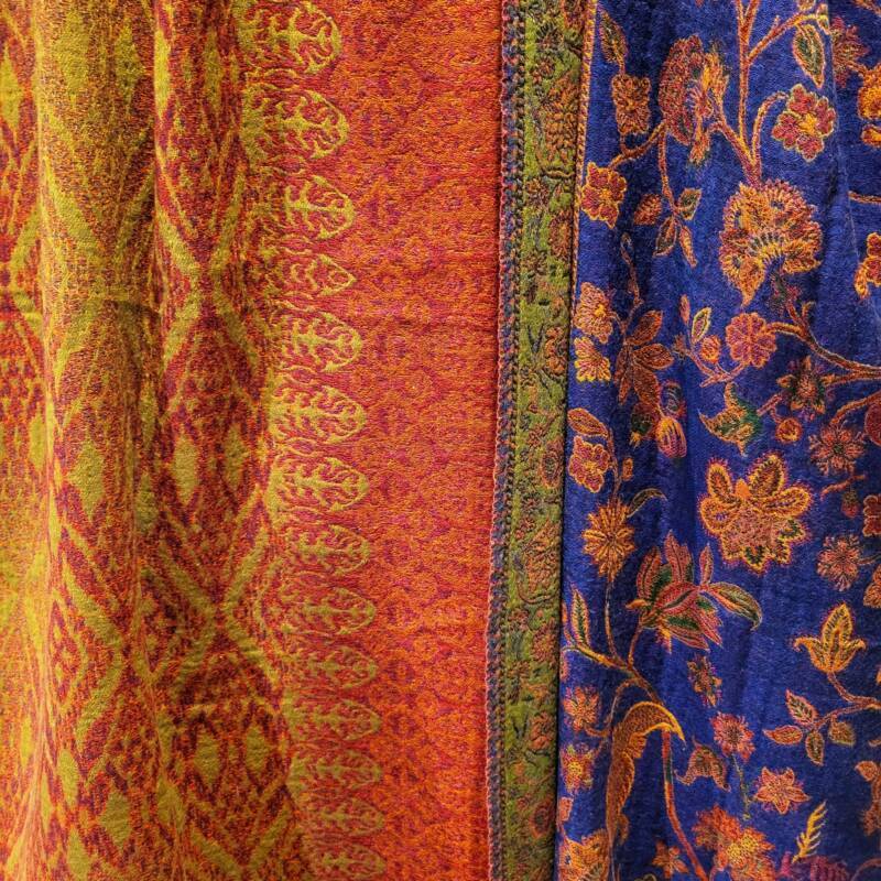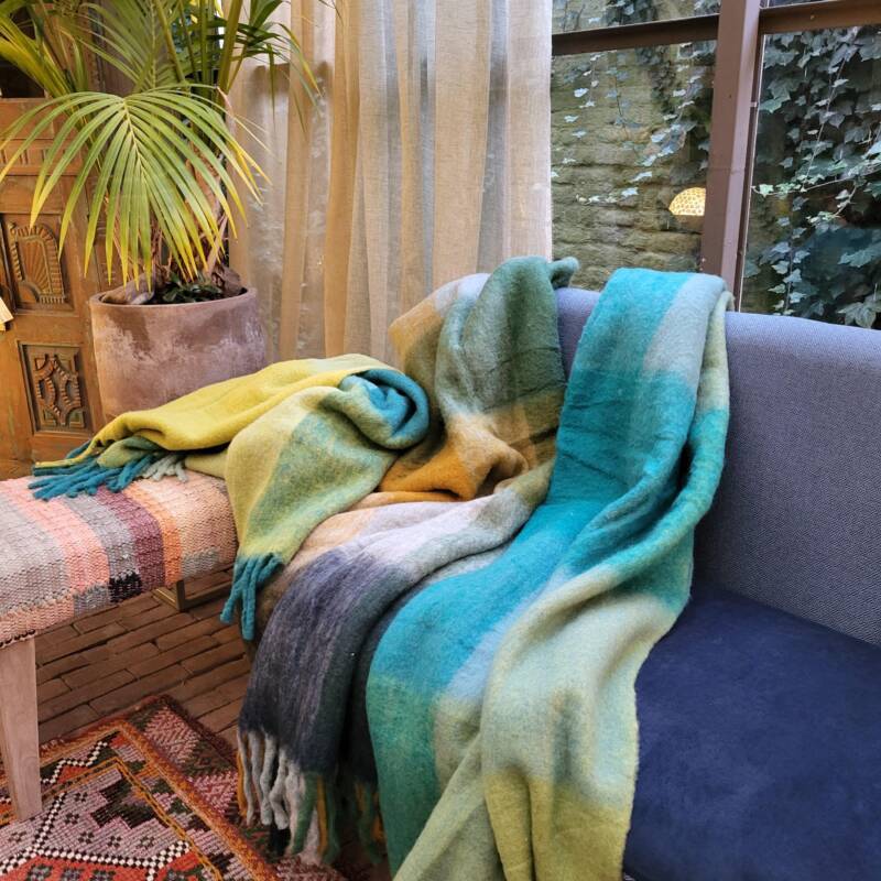 Er zijn mooie kleurrijke plaids die op de ambachtelijke Indiase weefgetouwen worden gemaakt volgens traditionele technieken, echter met innovatief kleurgebruik en in eigentijdse dessins. In deze plaids wordt wol of linnen gecombineerd met de heldere kleuren van zijde. Een lust voor het oog, ze staan prachtig op de bank of een stoel. Sommige klanten gebruiken ze zelfs als sprei of tafelkleed. De smallere sjaaluitvoering wordt vaak gebruikt als tafelloper. De plaids zijn € 145,- per stuk en hebben een formaat van 140 x 185 cm. De sjaals kosten 79,- per stuk.