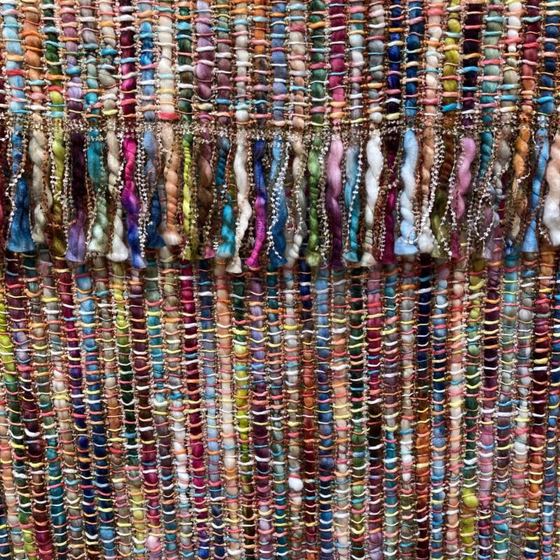 Een gedeelte van de collectie is er ook in sjaal, de samenstelling van wol en katoen maakt ze zacht, behaaglijk en kleurrijk!