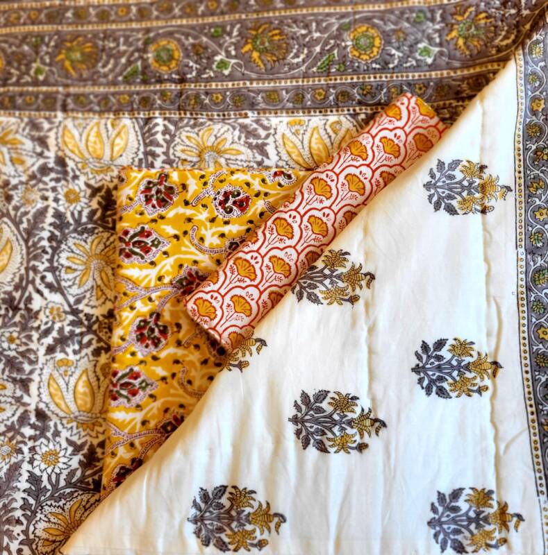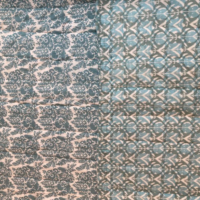 De quilts, heerlijke zachte gewatteerde dekens van katoenen voile, gevuld met 100% katoen zijn tweezijdig bedrukt, zodat u naar hartenlust kunt variëren met een print. Omdat deze producten allemaal met de hand gemaakt worden, kunnen de maten per item enigszins afwijken.