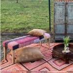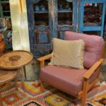 Deze meubelen zijn ambachtelijk vervaardigd. De gebruikte houtsoort is mango gecombineerd met handgeweven gerecyclede katoen. Door het gebruik van oude textielresten ontstaat er een grillige gedessineerde bekleding, dat maakt ieder exemplaar uniek.