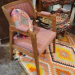 Deze stoelen van teakhout werden vroeger veelal gebruikt op straat als kappers stoel of in open lucht bioscopen. Dus zijn ze allemaal net een tikkeltje anders qua formaat, uitvoering en kleur en dat is nou juist de charme van dit product. Alhoewel van de huidige partij, de stoelen vrijwel indentiek en van zeer goede kwaliteit zijn. Dat is ook weleens anders geweest …😏De maten zijn plusminus hoogte 76 cm (armleuning 71 cm) breedte 55 cm en diepte 51 cm en de prijs is € 215,-.
