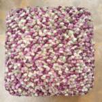 Van deze 100% wollen poefs zijn nog een aantal exemplaren voorradig en in de uitverkoop. Verkrijgbaar in twee maten; 45x45x30 cm van € 109,- nu voor € 50,- kleur licht paars