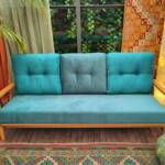 Het houten haagbeuken frame geeft het geheel een mooie natuurlijke uitstraling. Bij de kussens is het mogelijk de hoezen af te ritsen, bijkomend voordeel eenvoudig opnieuw te stofferen! Een duurzame gedachte.