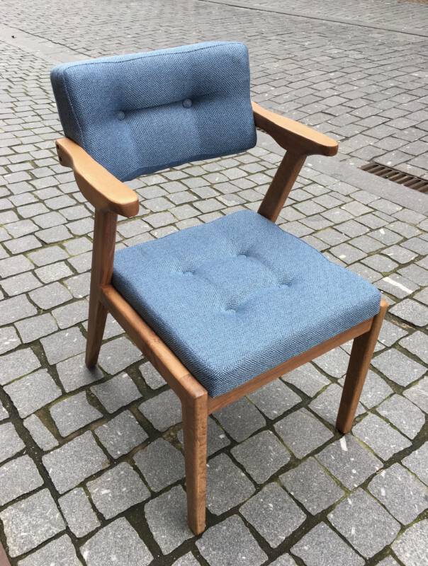 Deze comfortabele stoelen zijn “uit hetzelfde hout gesneden” als onze eetkamerstoelen. Namelijk haagbeuk. De bekleding van zowel de design- als de eetkamerstoelen zijn mogelijk in onderstaande stoffen. Bovenstaande modellen zijn verkrijgbaar voor € 325,- per stuk.