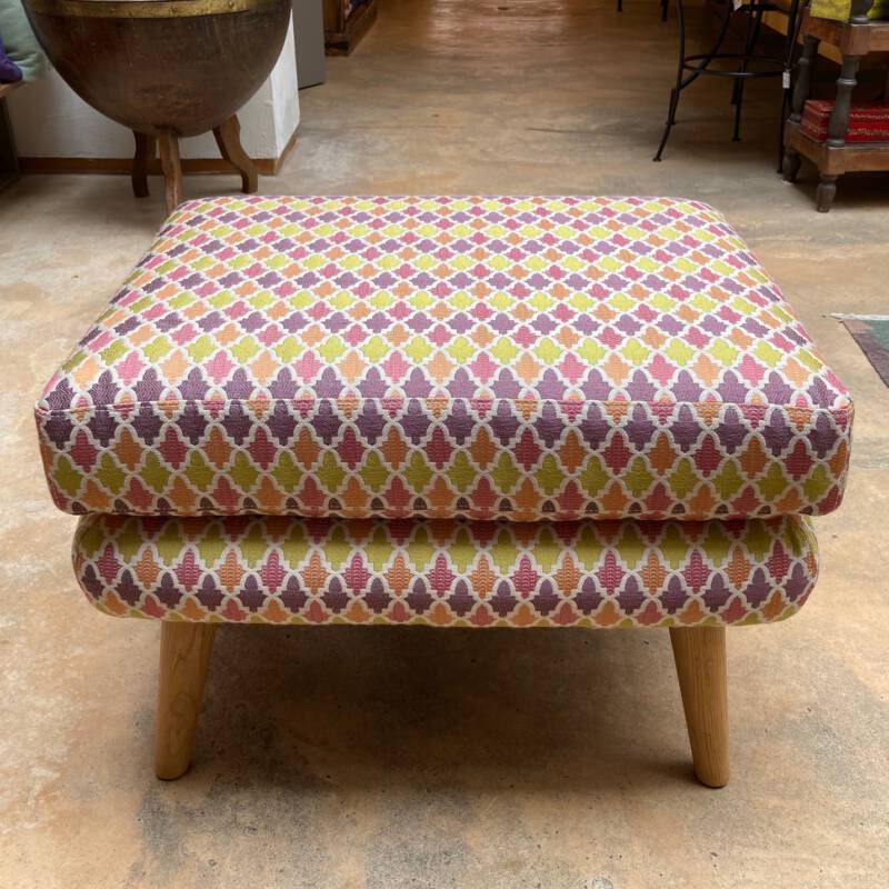 Onze lijn van compacte meubelen siert al jaren menig huiskamer. Er zijn slechts nog een aantal stoelen verkrijgbaar. In de voetenbankjes hebben we naast die op de website staan nog een aantal verschillende kleuren en patronen op voorraad. Voor voorbeelden en stalen kunt u terecht in onze winkels.