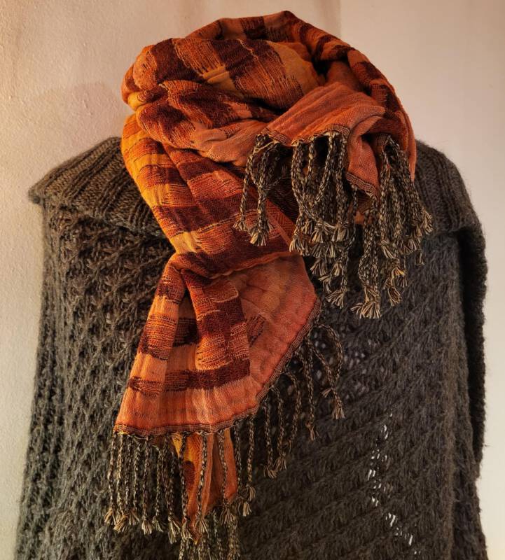 Deze sjaals bestaan uit 56% katoen en 44% wol. Ze zijn 70 x 180 cm en kosten € 55,- per stuk.