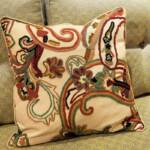 Het patroon met een sterretje* Yellow kost € 59,- per meter. ** De crewelstoffen op een linnen ondergrond, de WI 52 wit op wit kosten € 69,- per meter en zijn tevens 130 cm breed. *** De katoenen organza is 100 cm breed en kost € 59,- per meter. #Twee speciale crewels zijn de Eaton en Bird of Paradise, ze zijn met twee dunne draden voller geborduurd, deze techniek noemt men double ply. Heel mooi en verfijnd gemaakt, de prijs is € 85,- per meter. De laatste twee kussens zijn ook als stof aan de meter verkrijgbaar en kosten eveneens € 85,- per meter.