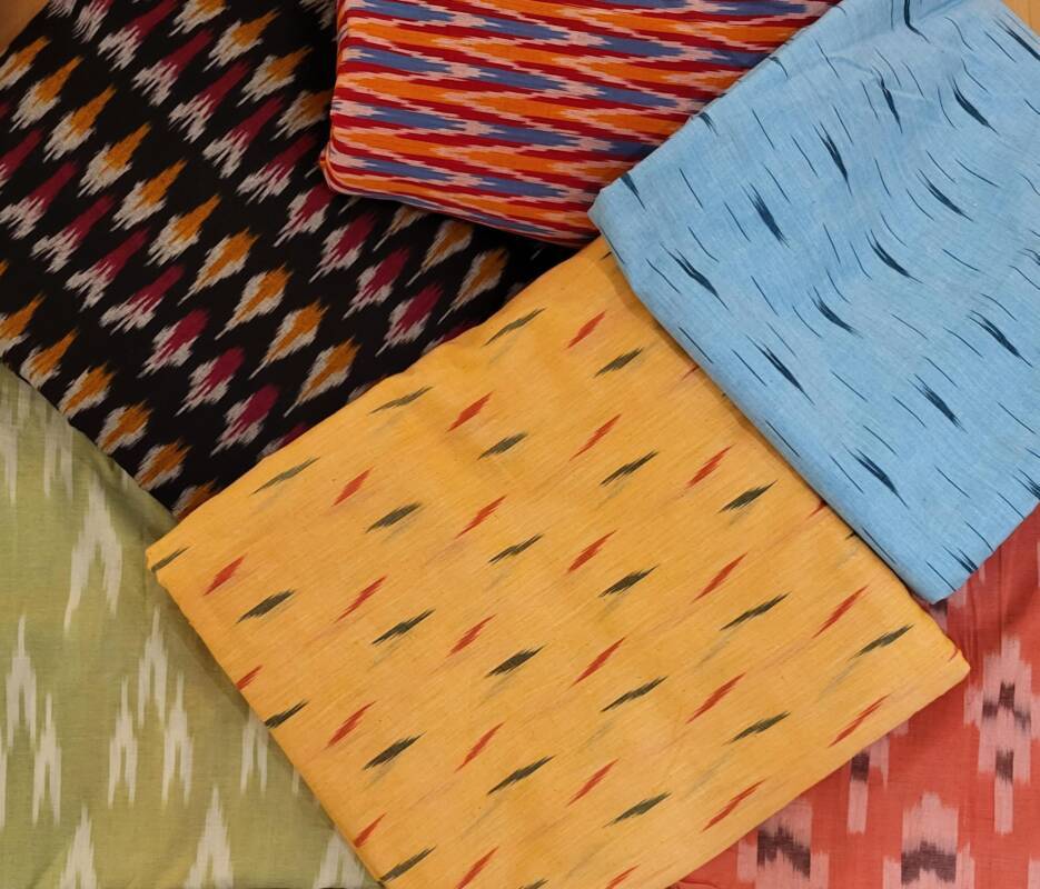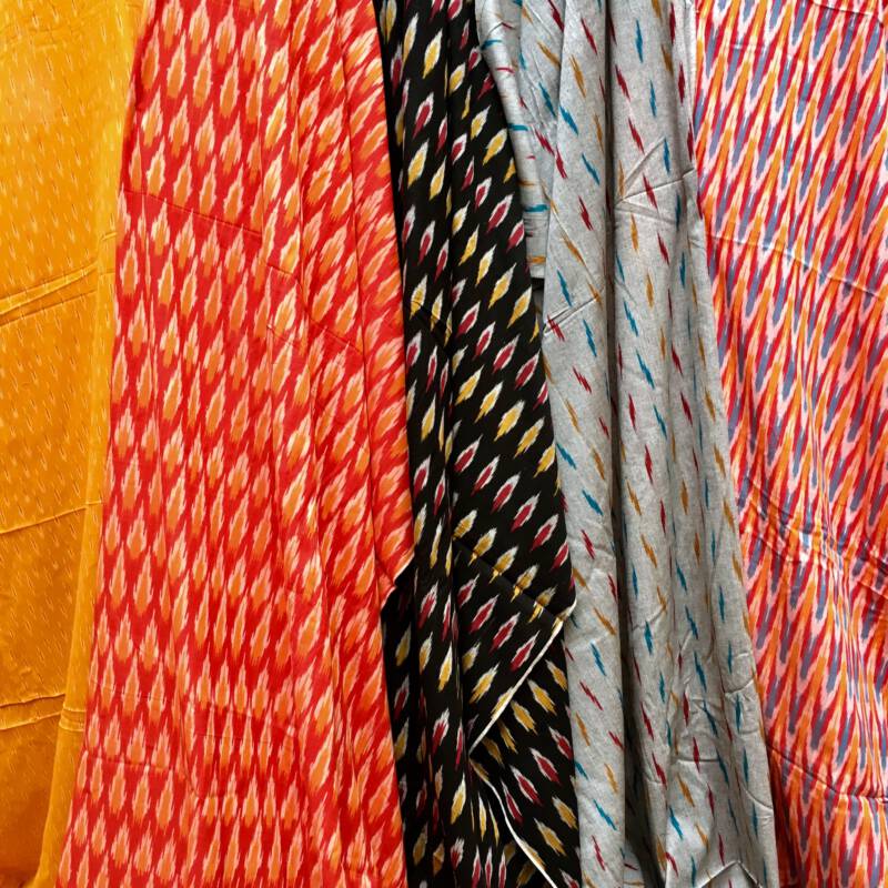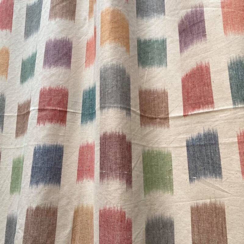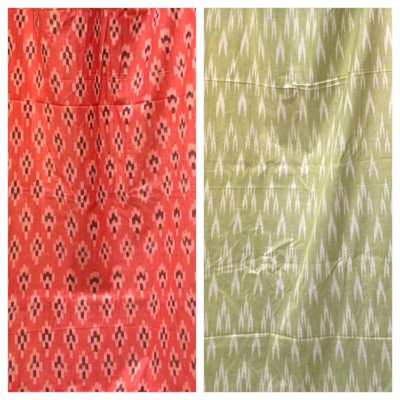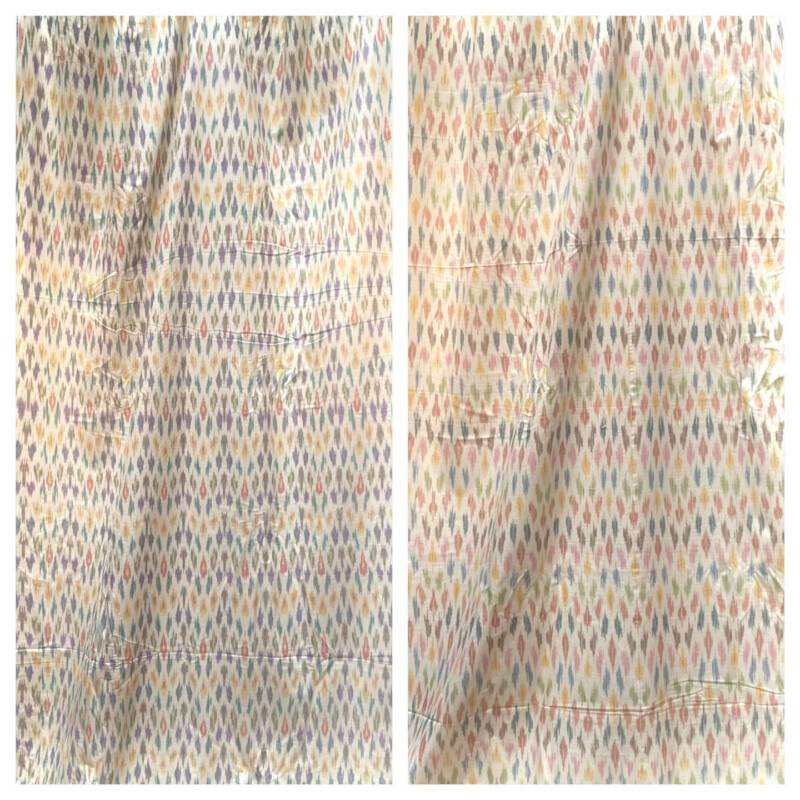 De Ikat stoffen zijn 110 cm breed, dit fijne geweven katoen valt heel soepel en maakt het zeer geschikt als gordijn, kledingstuk of bijvoorbeeld een draagdoek. Bovenstaande ikats zijn nu afgeprijsd naar € 10,- per meter, zolang de voorraad strekt.