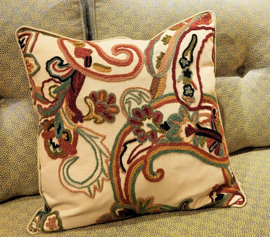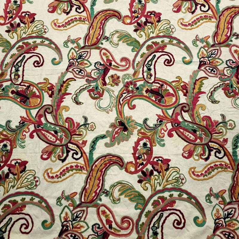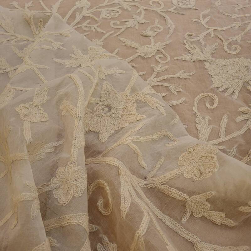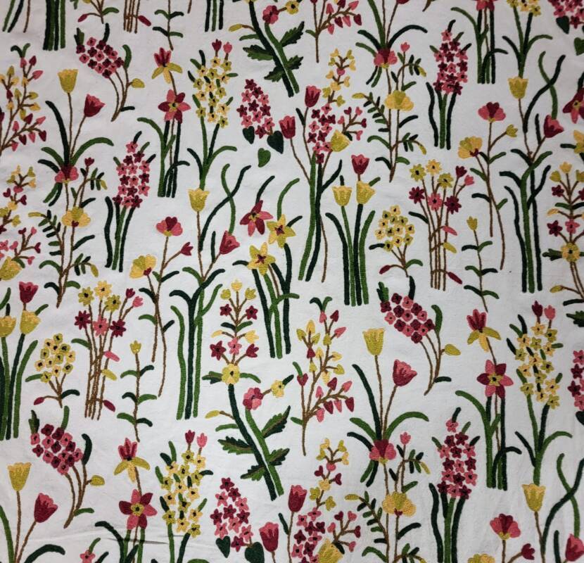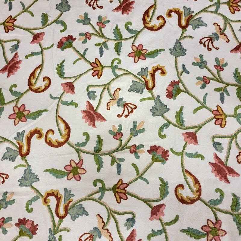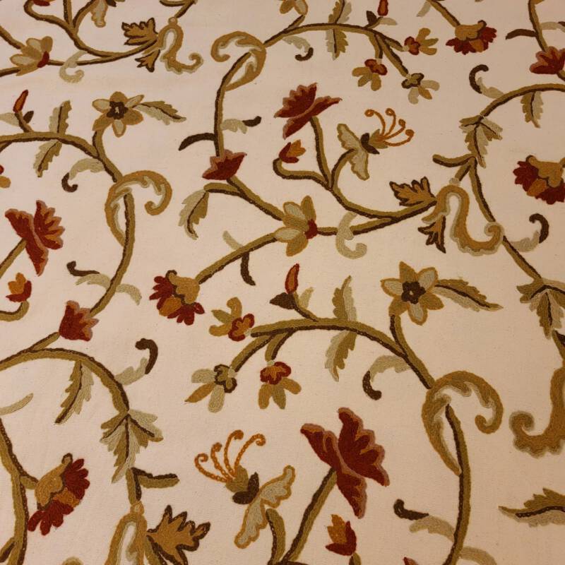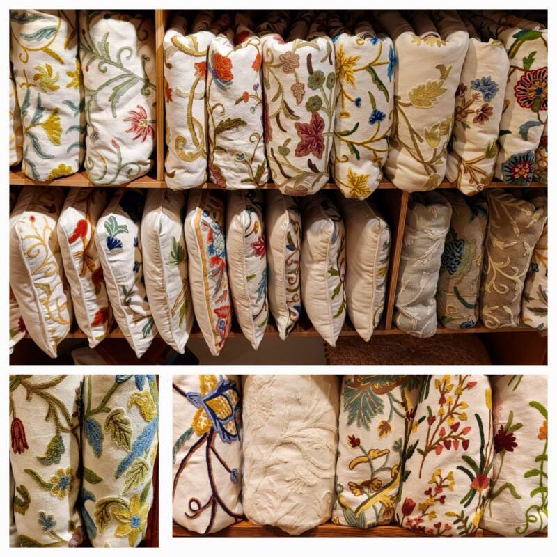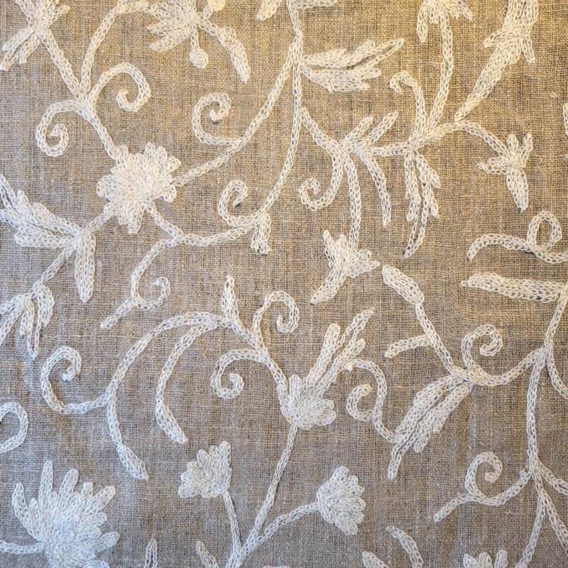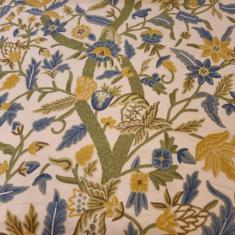 Crewelwork is een handmatige borduur techniek waarbij met een wollen draad en een soort haaknaald ( Aari naald ) via een kettingsteek patronen op katoen, linnen of katoenen organza wordt vervaardigd. Het is een traditionele techniek, in het ontwerp zijn meestal florale en/of dier figuren te vinden. Kronkelende takken en bladeren verbinden de kleurrijke bloemen met elkaar. Dit ambacht wordt nog slechts door een kleine groep mensen beoefend. De bedrijven waar wij mee werken hebben oog voor de werkomstandigheden en respect voor het milieu.