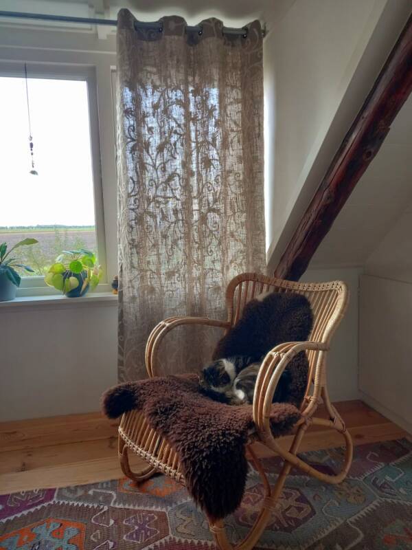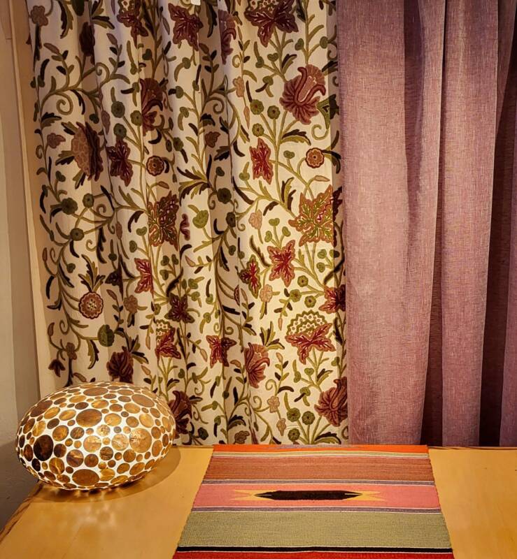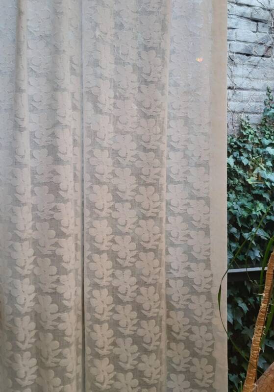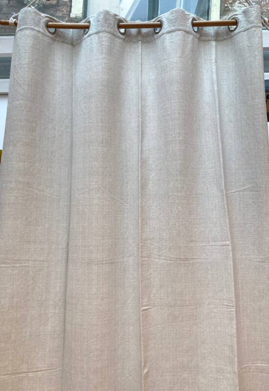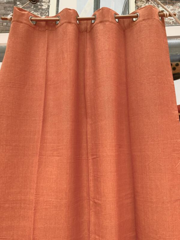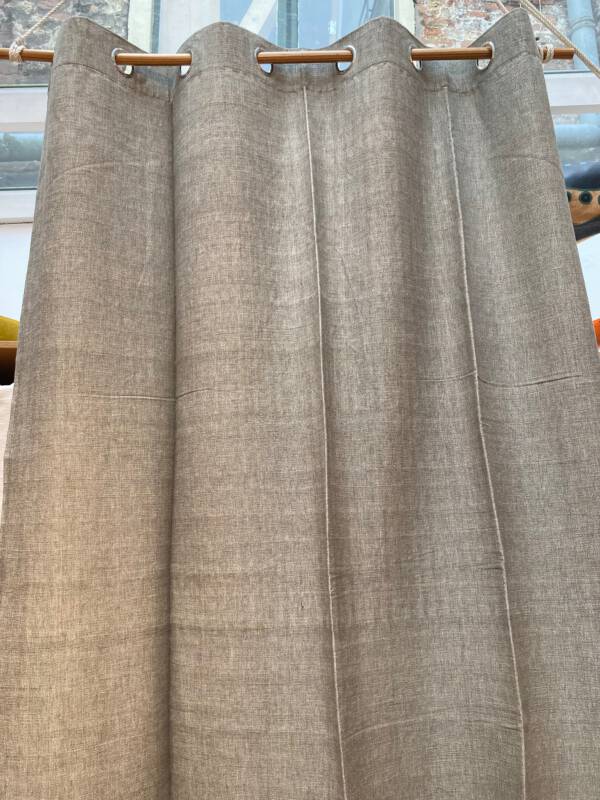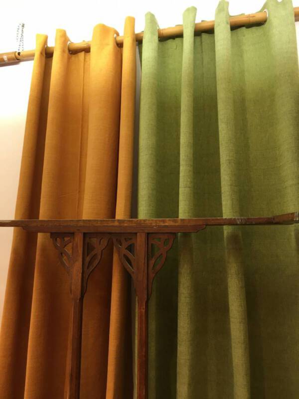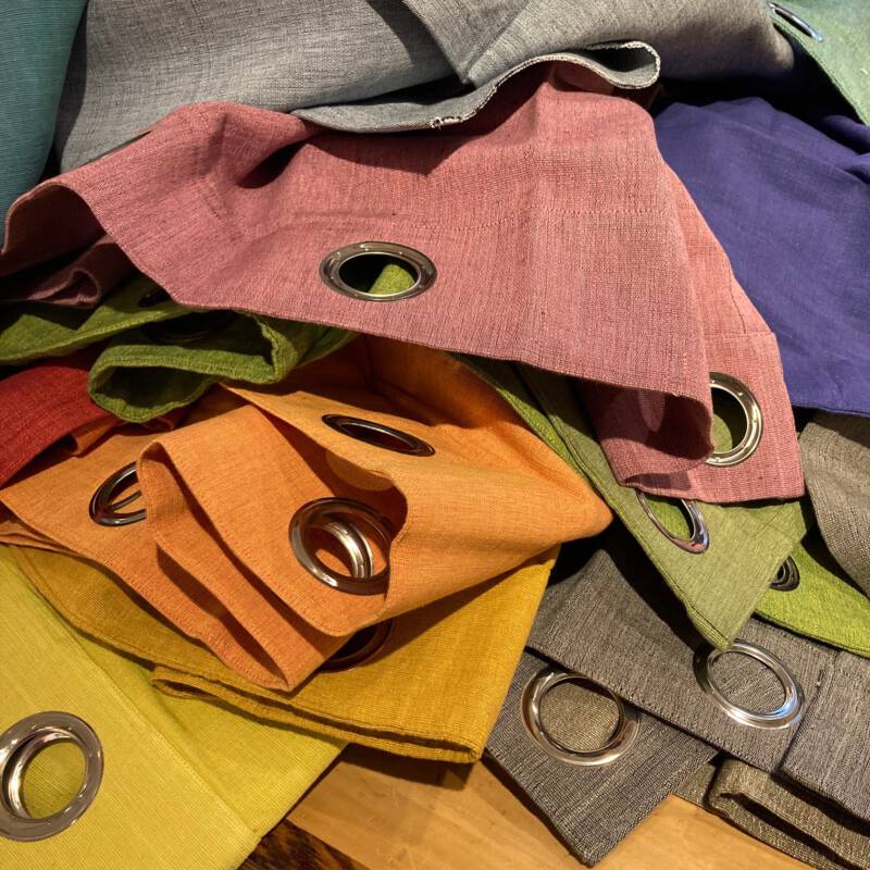 Van een aantal handgeweven effen stoffen hebben wij kant en klare gordijnen met ingeslagen ringen laten maken. Deze zijn 295 cm lang, 150 cm breed en kosten € 69,- per stuk. De meeste stoffen zijn ook “aan de meter” verkrijgbaar en kunnen via een atelier tot gordijnen geconfectioneerd worden.