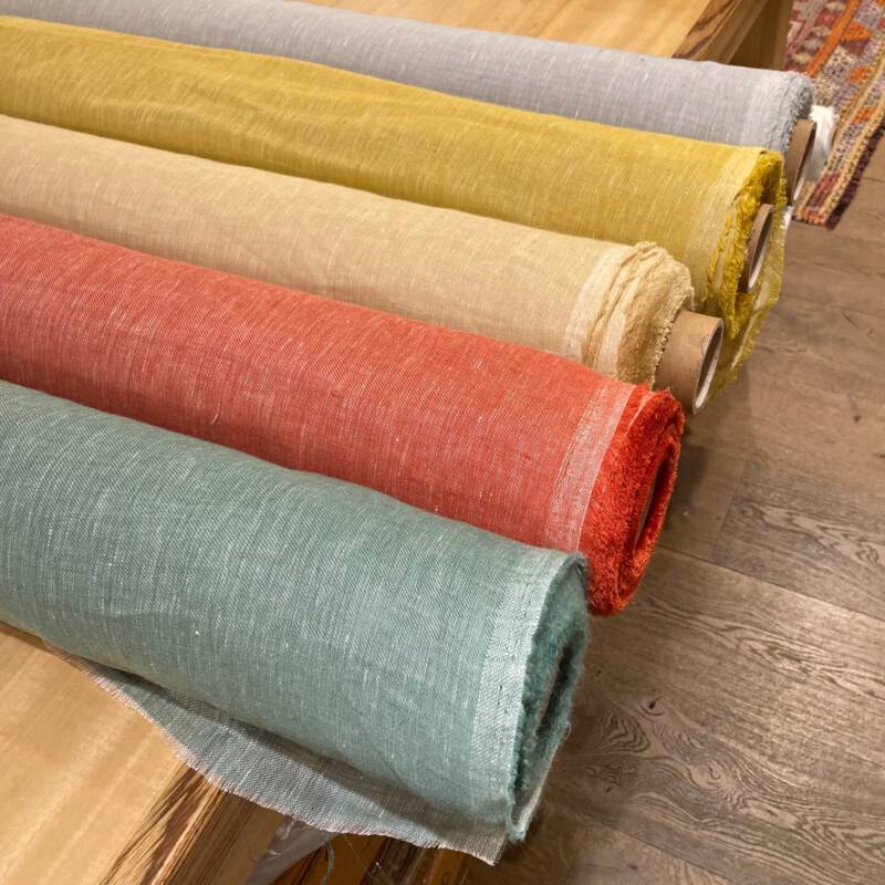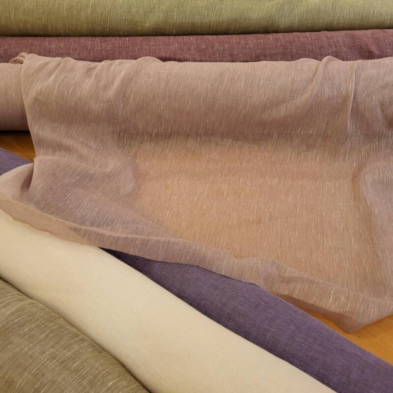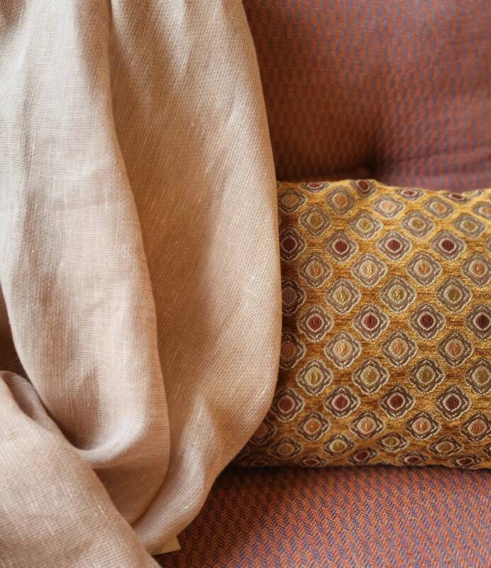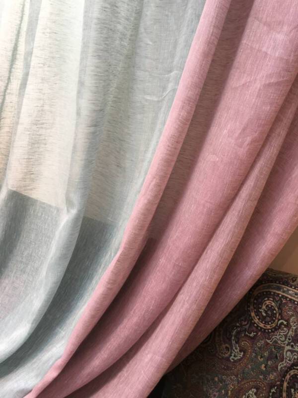De soepel vallende, transparant linnen stoffen sieren al menig woonkamer in Nederland. Verwerkt tot gordijnen vallen ze mooi sluik en nemen niet veel ruimte in. Ze combineren door het gebruik van twee verschillende kleuren draden heel goed met onze kelims en de andere prachtige stoffen die we in de collectie hebben. Deze in between stoffen zijn gemaakt van 100 % linnen of in een samenstelling van 45 % polyester en 55 % linnen verkrijgbaar, beiden zijn 150 cm breed en kosten € 27,50 per meter. Ze worden geproduccerd in Turkije. Dit bedrijf wat gevestigd is Bursa, heeft recent een nieuwe fabriek in gebruik genomen en voldoet aan diverse standaarden zoals, Oekotex 100, ISO 9001 en ISO 14001, verder wordt minimaal 35% van de gebruikte energie via zonnepanelen opgewekt.
